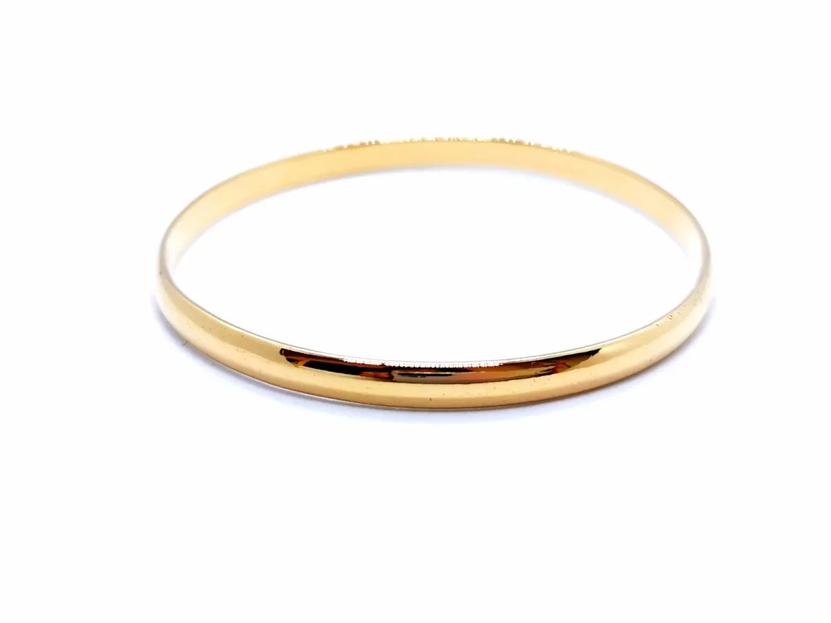 Bracelet jonc rigide, en or jaune 750 millièmes (18 carats), massif, forme ovale, diamètre interieur: 5,6 cm x 6,6 cm, largeur: 0,44 cm, épaisseur: 0,19 cm, poids total: 18,79 g, poinçon tête d’aigle, excellent état