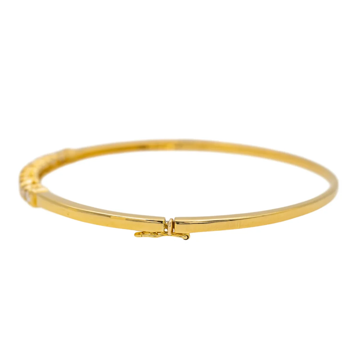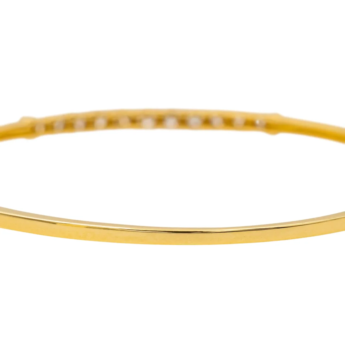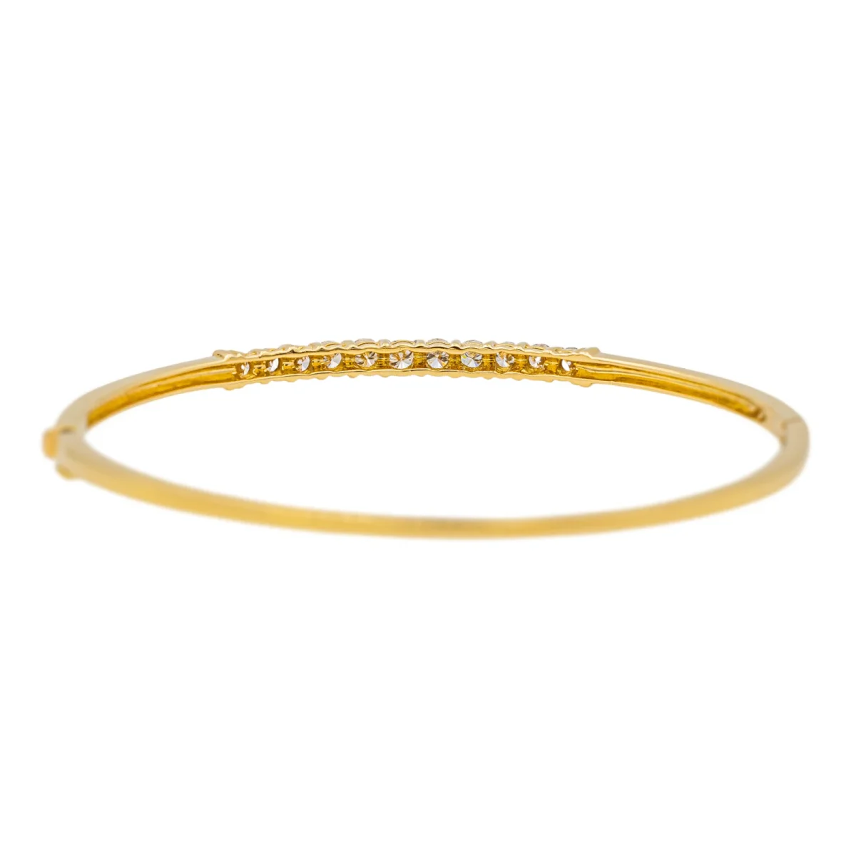 Bracelet jonc en or jaune 750 millièmes (18 carats), jonc ouvrant avec fermoir languette et huit de sécurité, serti de 11 diamants taille brillant estimés H/SI, 6 diamants d’environ 0,05 ct chacun et 5 d’environ 0,10 ct chacun, Poids total estimé des diamants: 0,80 ct, Tour de poignet: 16,5 cm, Largeur: 0,33 cm, Poids total: 10,68 g, Poinçon tête d’aigle, Excellent état