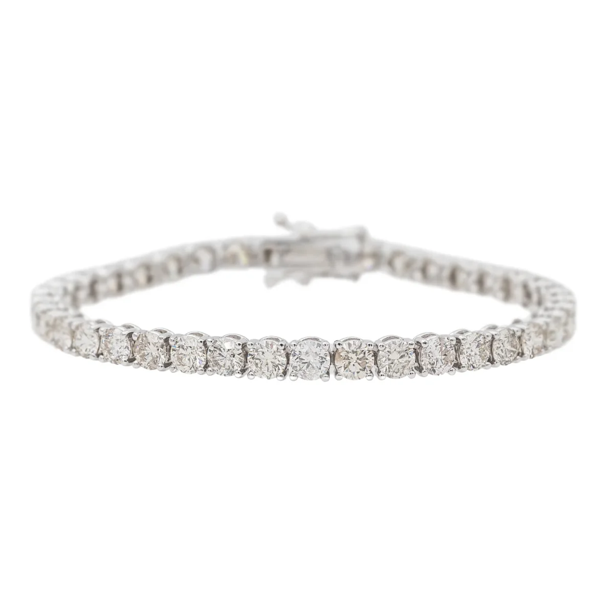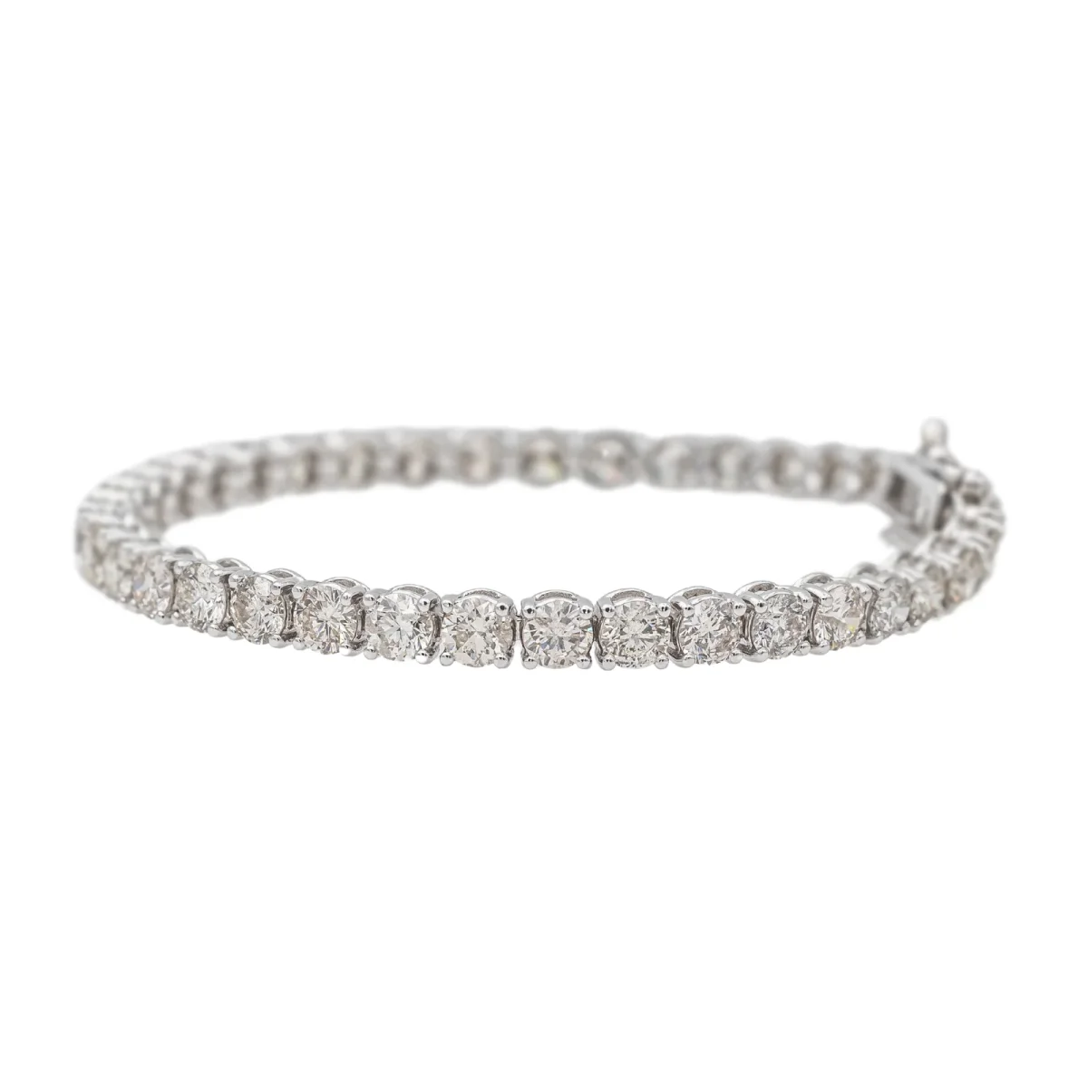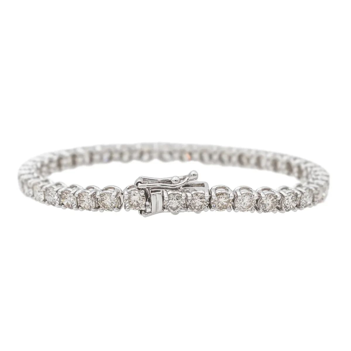 Bracelet tennis, en or blanc 750 millièmes (18 carats), ligne de diamants, 39 diamants taille brillant, environ H-SI, d’un poids total d’environ 10,53 cts, (chaque diamant d’un poids d’environ 0,27 ct), longueur : 18,00 cm, largeur : 0,44 cm, épaisseur : 0,40 cm, poids total : 16,57 g, fermoir avec huit de sécurité, poinçon tête d’aigle, excellent état