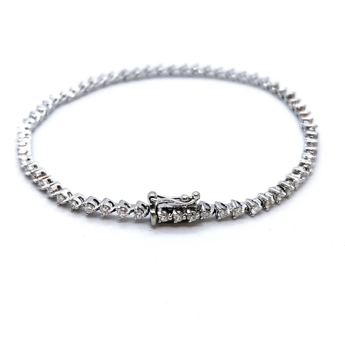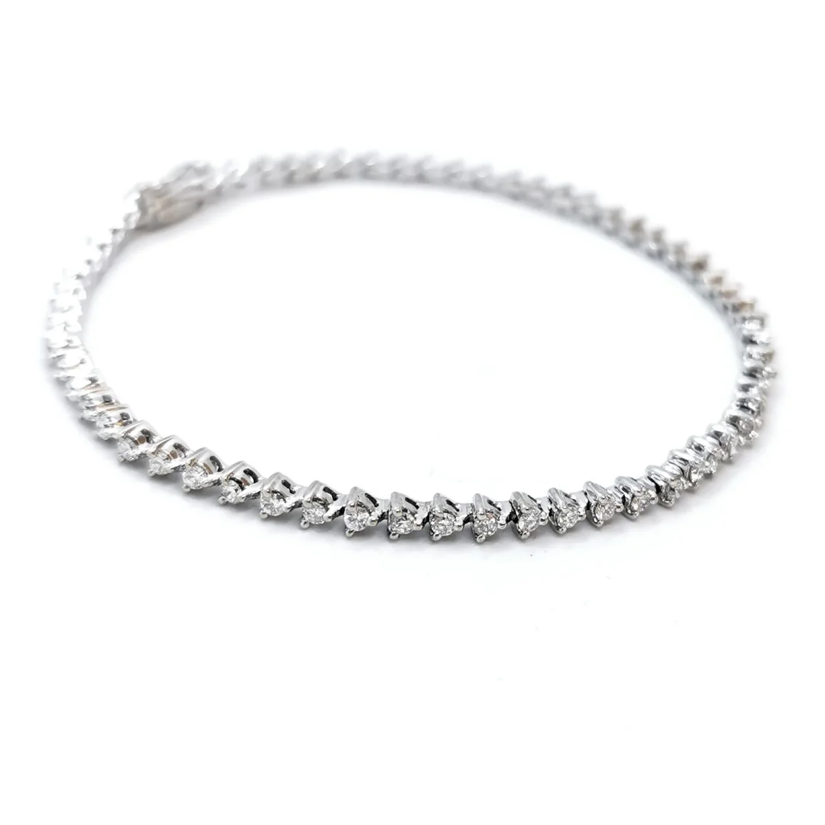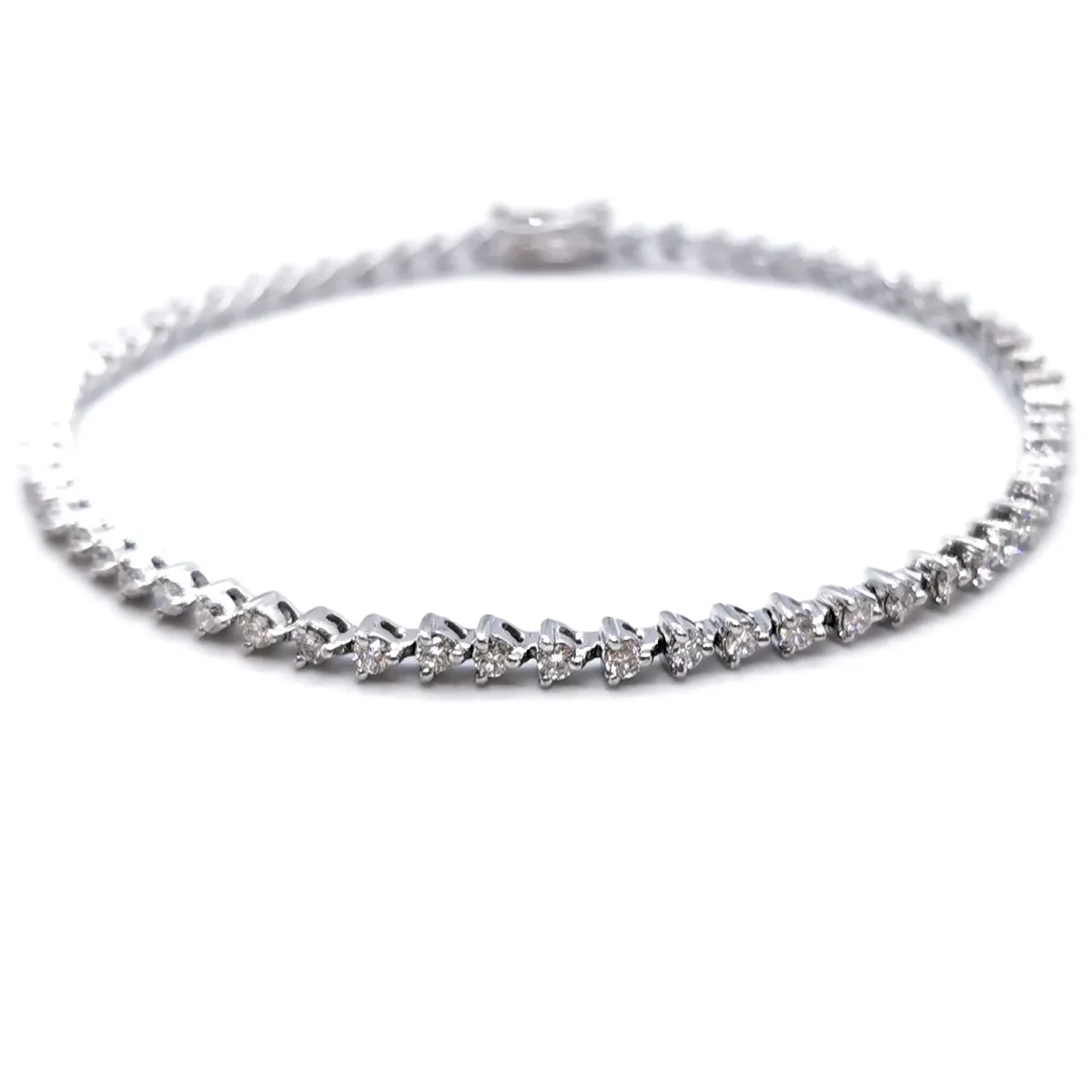 Bracelet Ligne en or blanc 750 millièmes (18 carats), serti de 64 diamants de taille brillant environ F/SI d’environ 0,04 ct chacun, Poids total estimé des diamants: 2,56 cts, Longueur du bracelet: 18 cm, largeur: ,Poids total : 8,23 g, Poinçon tête d’aigle, Excellent état