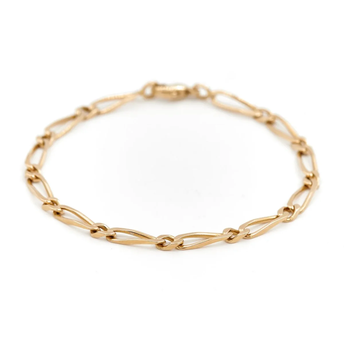 bracelet en or jaune 750 millièmes (18 carats), maille alternée 1×1, longueur: 19 cm, largeur: 0,37 cm, poids total: 7,61 g, poinçon de tête d’aigle, excellent état