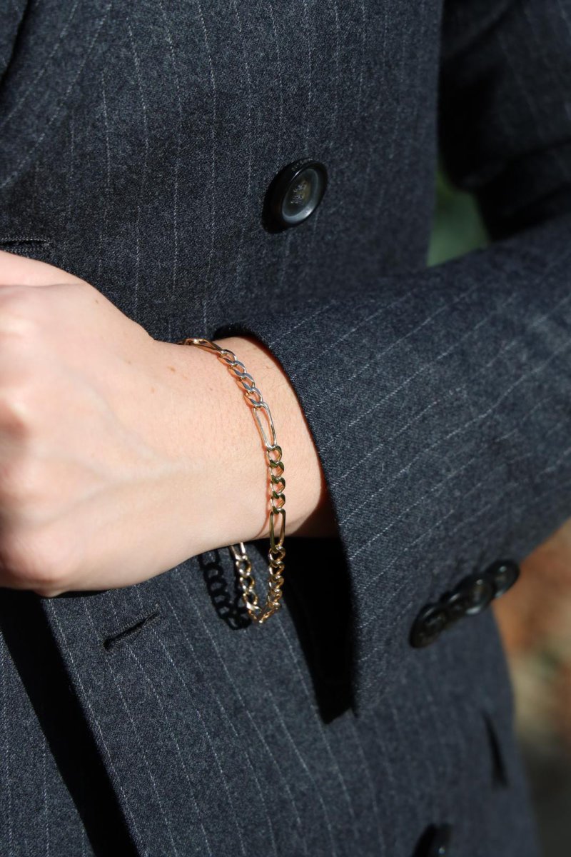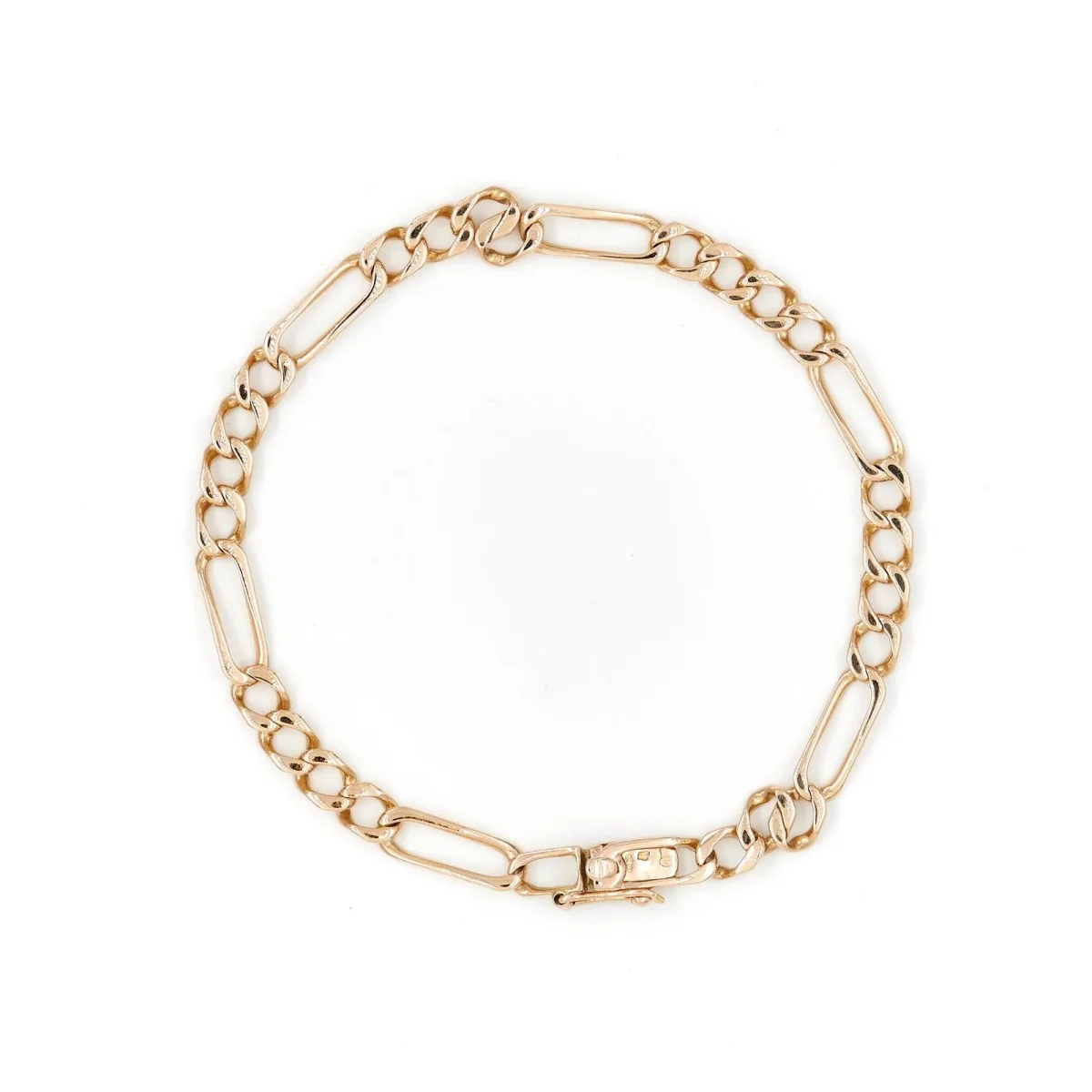 bracelet en or jaune 750 millièmes (18 carats), maille alternée 4×1 avec huit de sécurité , longueur: 19 cm, largeur: 0,4 cm, poids total: 9,12 g, poinçon tête d’aigle, excellent état