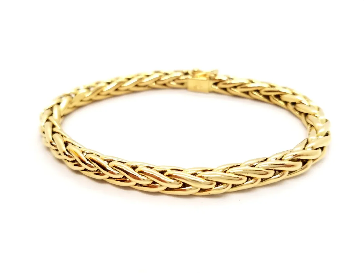 Bracelet maille palmier en or jaune 750 millièmes (18 carats), longueur chaîne: 18 cm, largeur maille: 0,55 cm, poinçon tête d’aigle, poids total: 16,11 g, excellent état