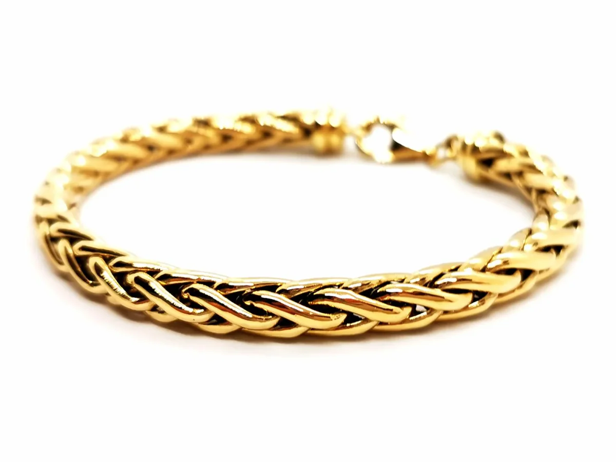 Bracelet en or jaune 750 millièmes (18 carats), maille palmier, longueur: 19 cm, largeur: 0,49 cm, fermoir mousqueton, poids total: 15,08 g, poinçon tête d’aigle, excellent état.