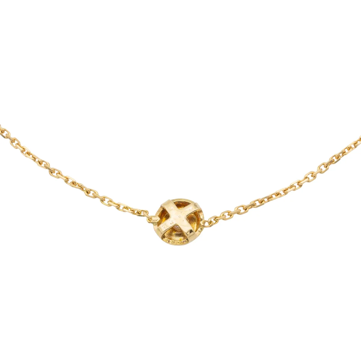 Bracelet en or jaune 750 millièmes (18 carats), fine chaîne en maille forçat sur laquelle est posé un diamant taille brillant G-H V-SI de 0,012 ct en serti clos, Longueur: 18 cm avec anneaux intermédiaires à 16 cm et à 14 cm, diamètre du motif: 0,48 cm, largeur de la chaîne: 0,7 mm, poids total: […]