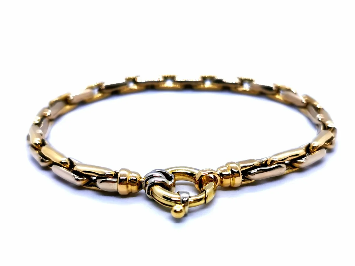 Bracelet bicolore, en or jaune et blanc 750 millièmes (18 carats), longueur: 21 cm, largeur: 0,5 cm, poid total: 14,58 g, poinçon tête d’aigle, excellent état
