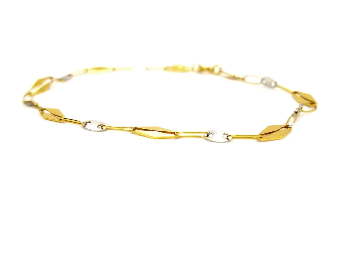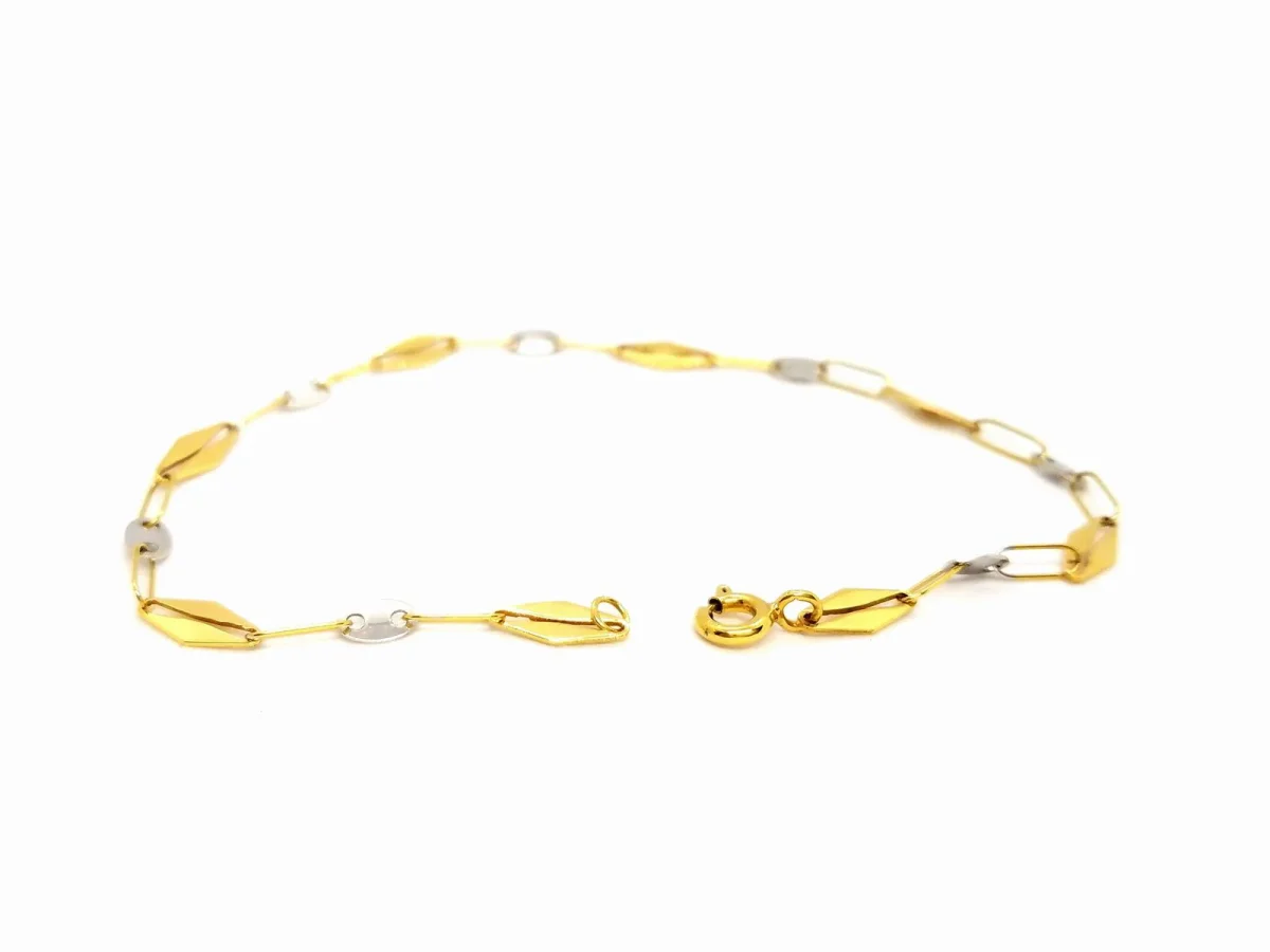 Bracelet bicolore, en or jaune et blanc 750 millièmes (18 carats) testé, longueur: 18 cm, largeur: 0,34 cm, poids total: 1,85 g, état neuf