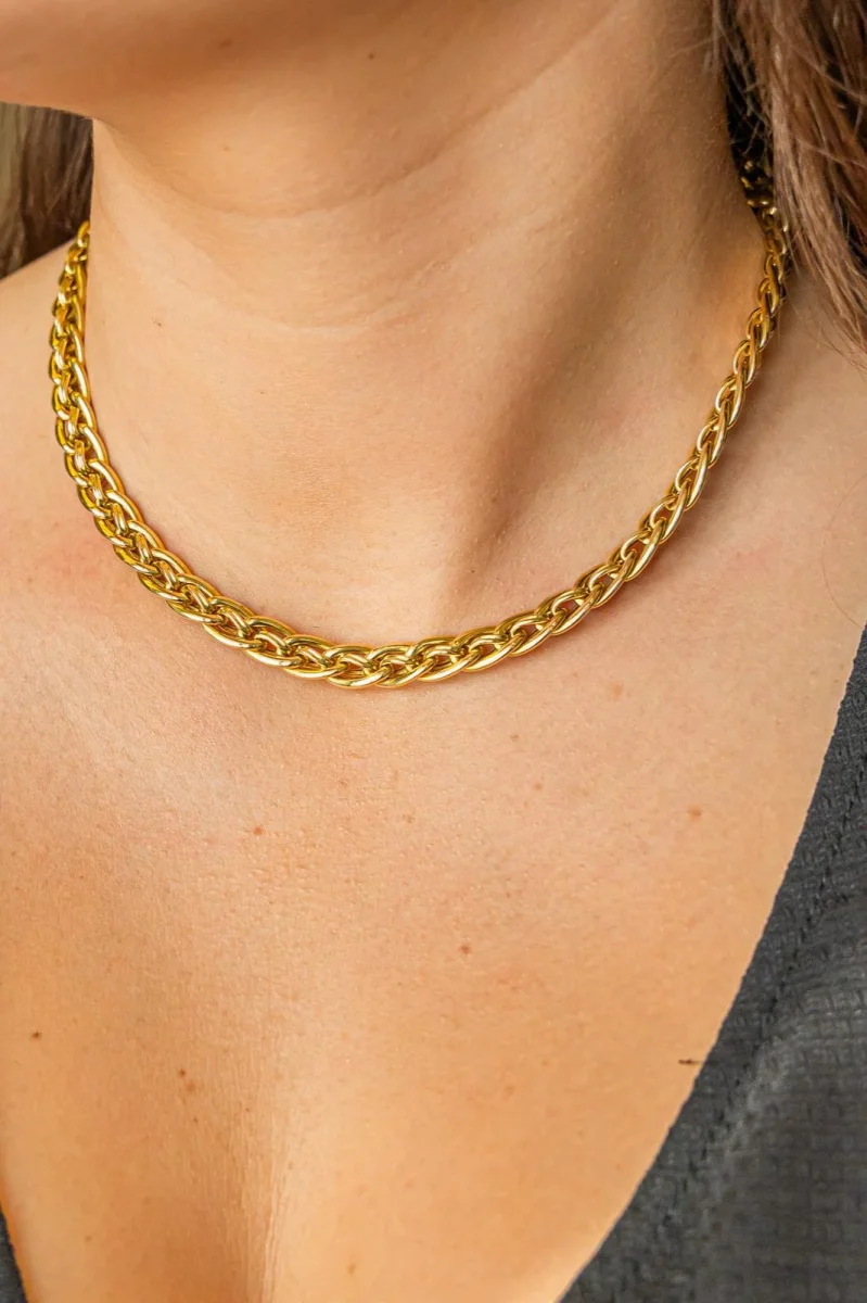 Collier en or jaune 750 millièmes (18 carats), Signé de la Maison Caplain Paris, maille souple fantaisie, longueur: 42 cm, largeur: 0,78 cm, Poids total: 27,59 g, Poinçont tête d’aigle, Excellent état
