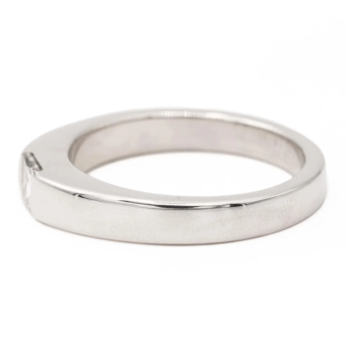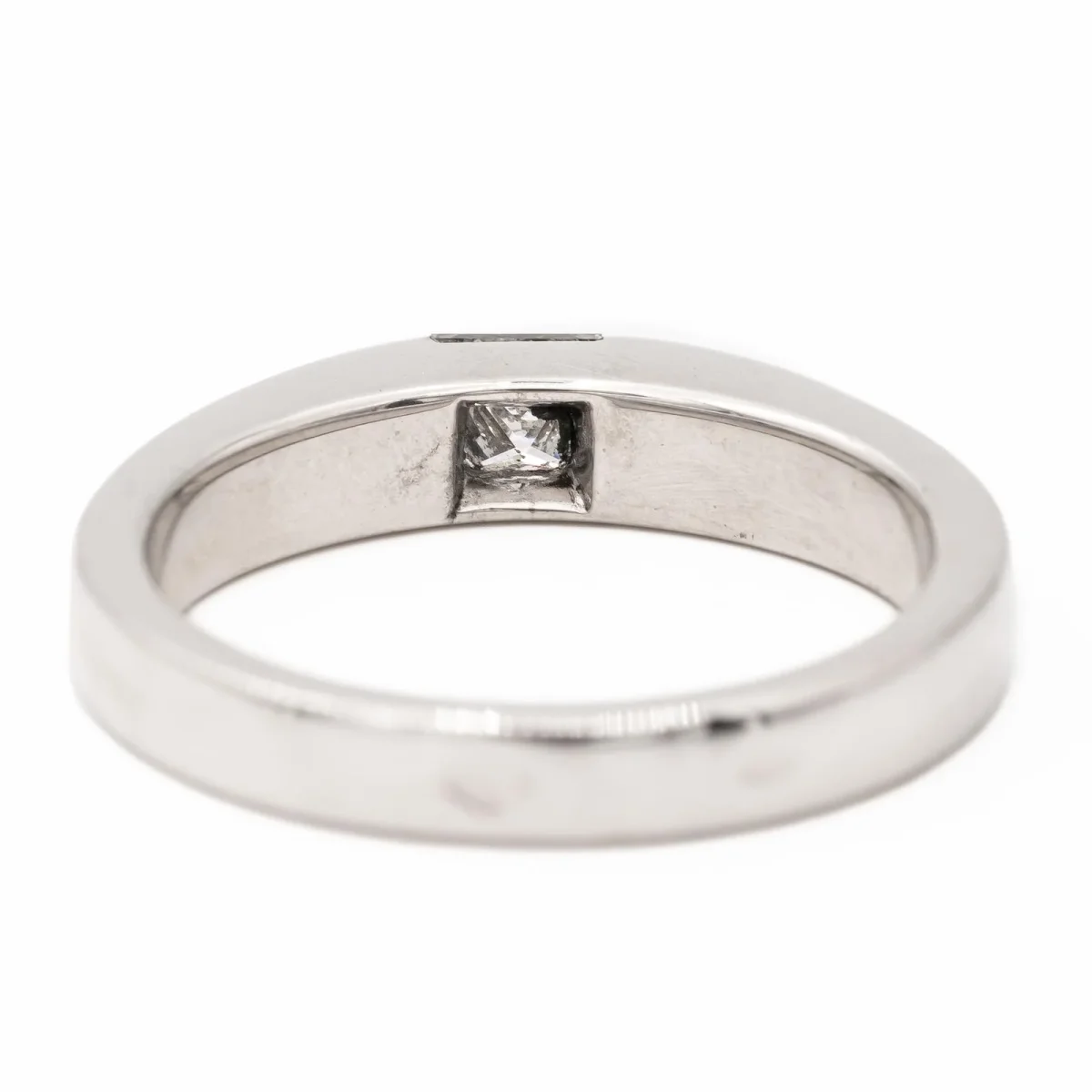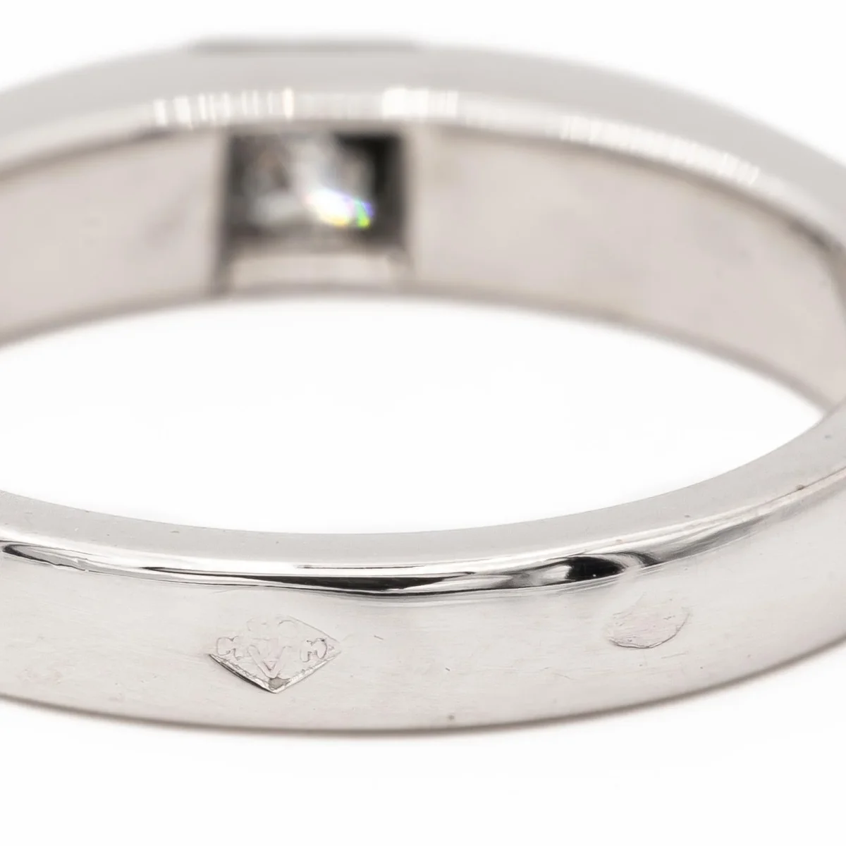 Bague signée de la Maison Cartier, collection Tank, en or blanc 750 millièmes (18 carats), sertie d’un diamant taille princesse environ I/VS, d’un poids total d’environ 0,1 ct, largeur sur le dessus: 0,35 cm, tour de doigt: 49, poids total: 5,13 g, poinçon tête d’aigle, numérotée 86NK, excellent état