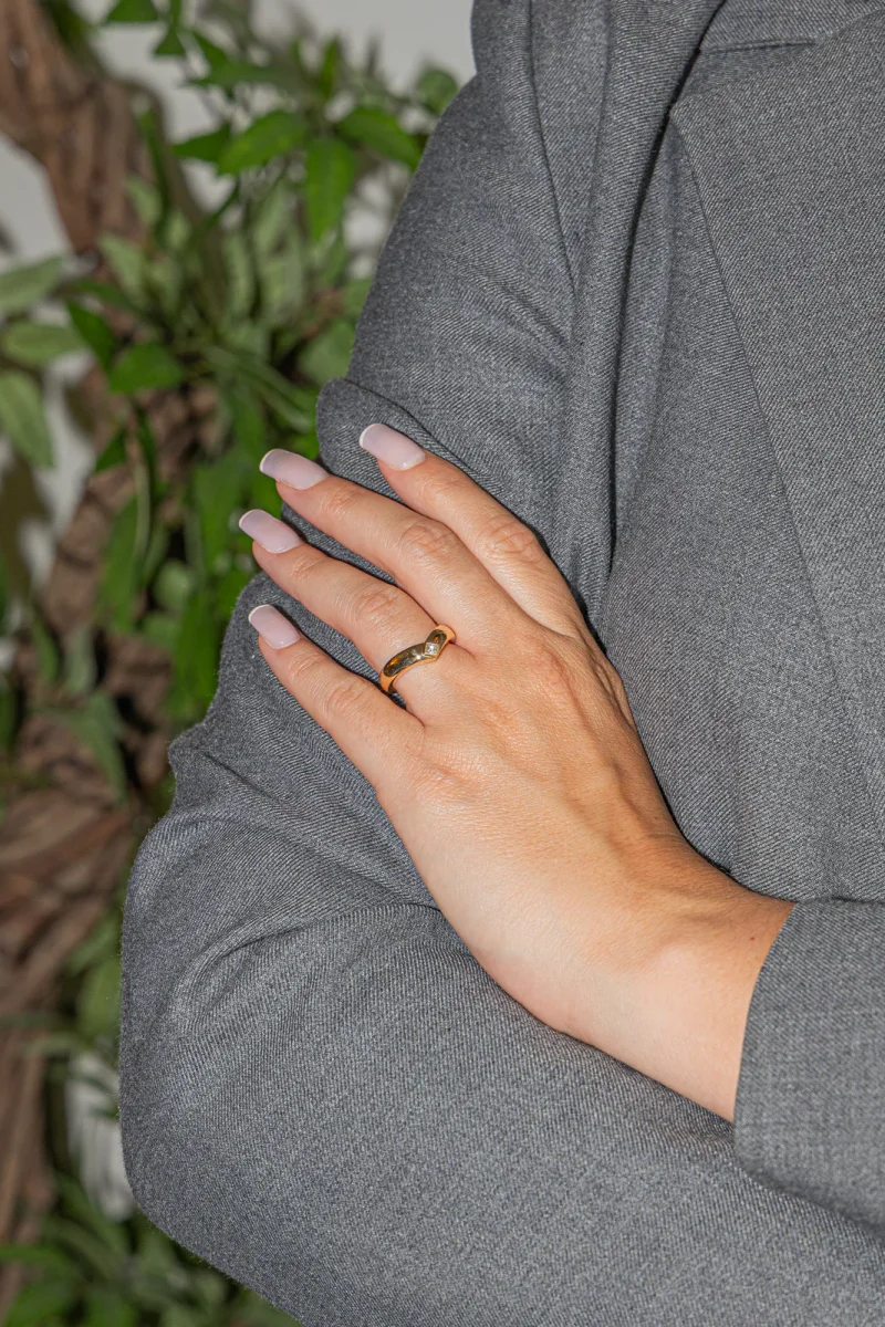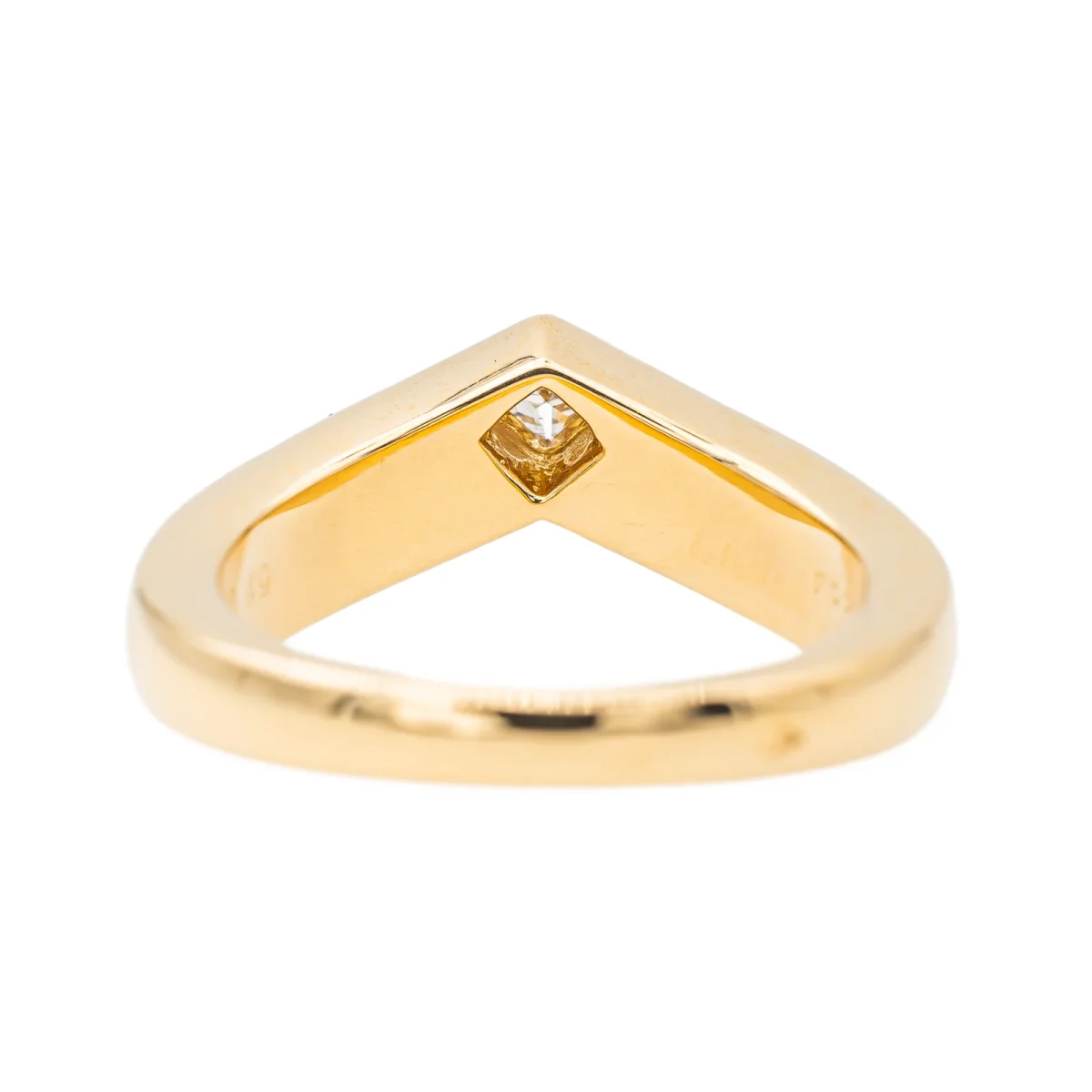 Bague signée de la Maison Cartier, collection Triandre, en or jaune 750 millièmes (18 carats), sertie d’un diamant taille princesse environ G/VVS, d’un poids total d’environ 0,14 ct, largeur sur le dessus: 0,50 cm, tour de doigt: 52, poids total: 8,76 g, poinçon tête d’aigle, numérotée D07 494, excellent état