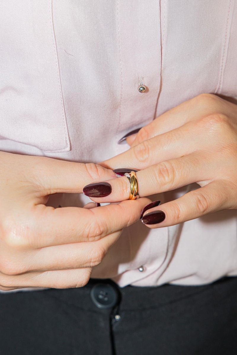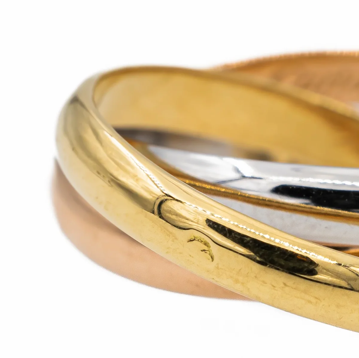 Bague signée de la Maison Cartier, petit modèle Trinity, 3 ors 750 millièmes (18 carats), tour de doigt: 47, largeur d’un anneau: 0,25 cm, poids total: 3,93 g, numérotée: EV3307, poinçon tête d’aigle, excellent état