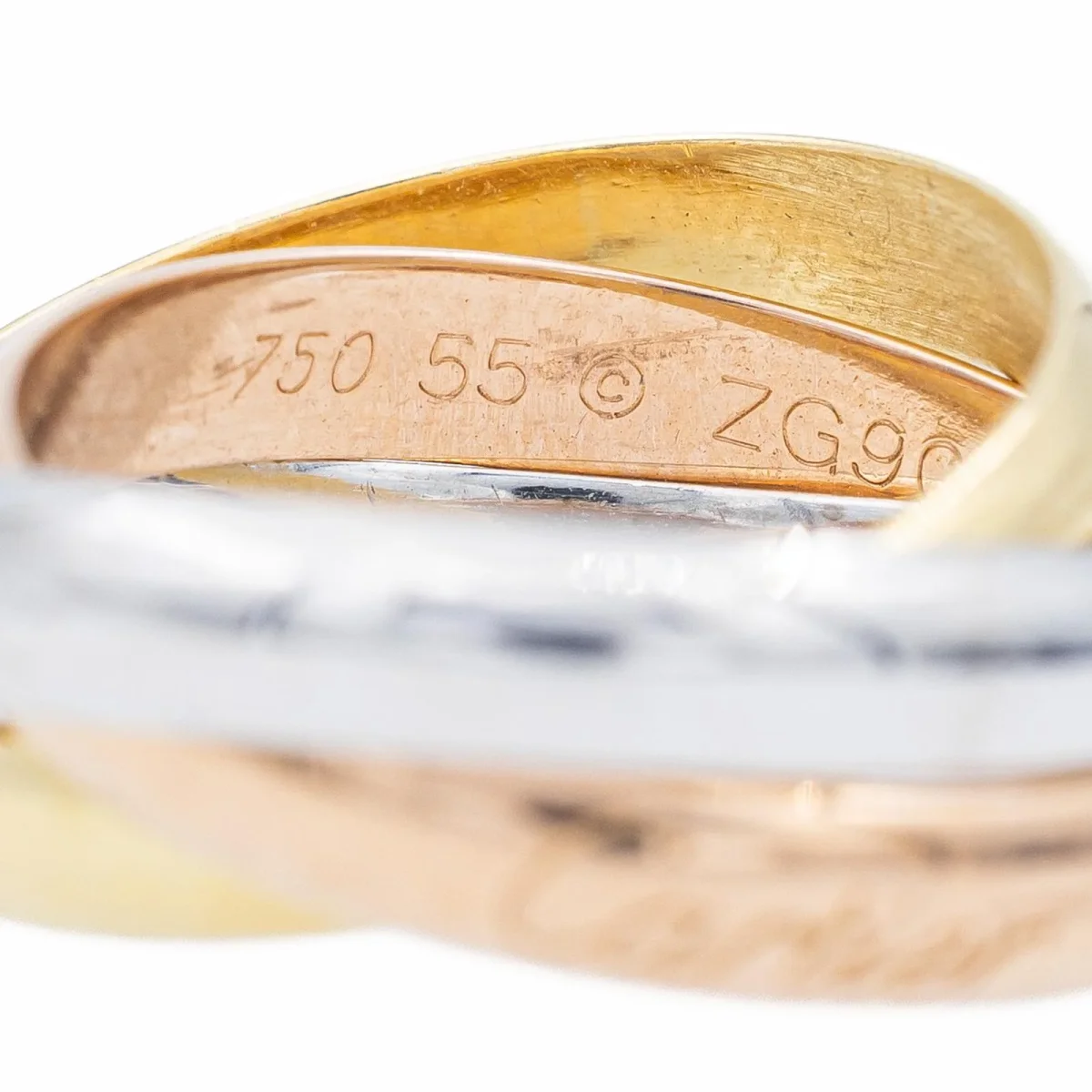 Bague Cartier « Trinity » 3 ors 750 millièmes (18 carats), tour de doigt: 54, poids total: 8,84 g, poinçon hibou, excellent état, numérotée : ZG9067