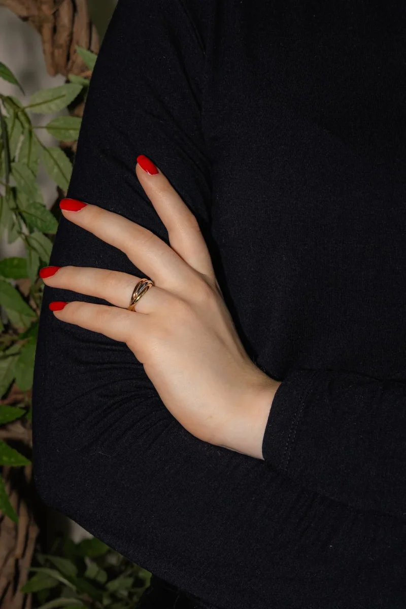 Bague vintage signée de la Maison Cartier, Collection Trinity, petit modèle, 3 ors 750 millièmes (18 carats), tour de doigt: 54, largeur d’un anneau: 0,24 cm, poids total: 4,69 g, , poinçon tête d’aigle partiellement effacé, excellent état