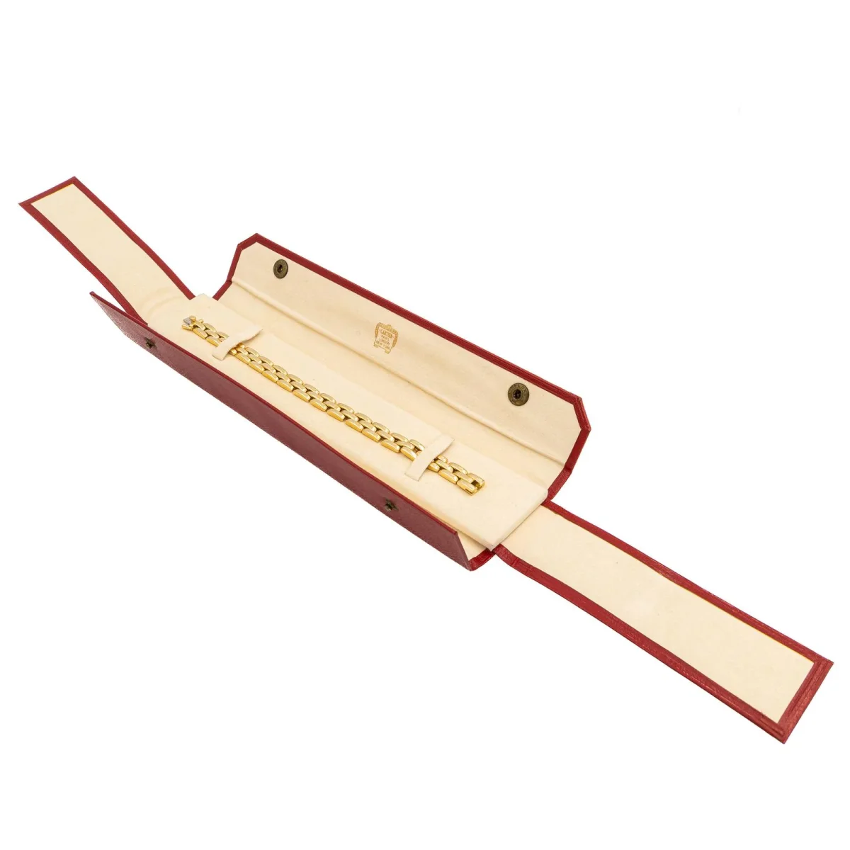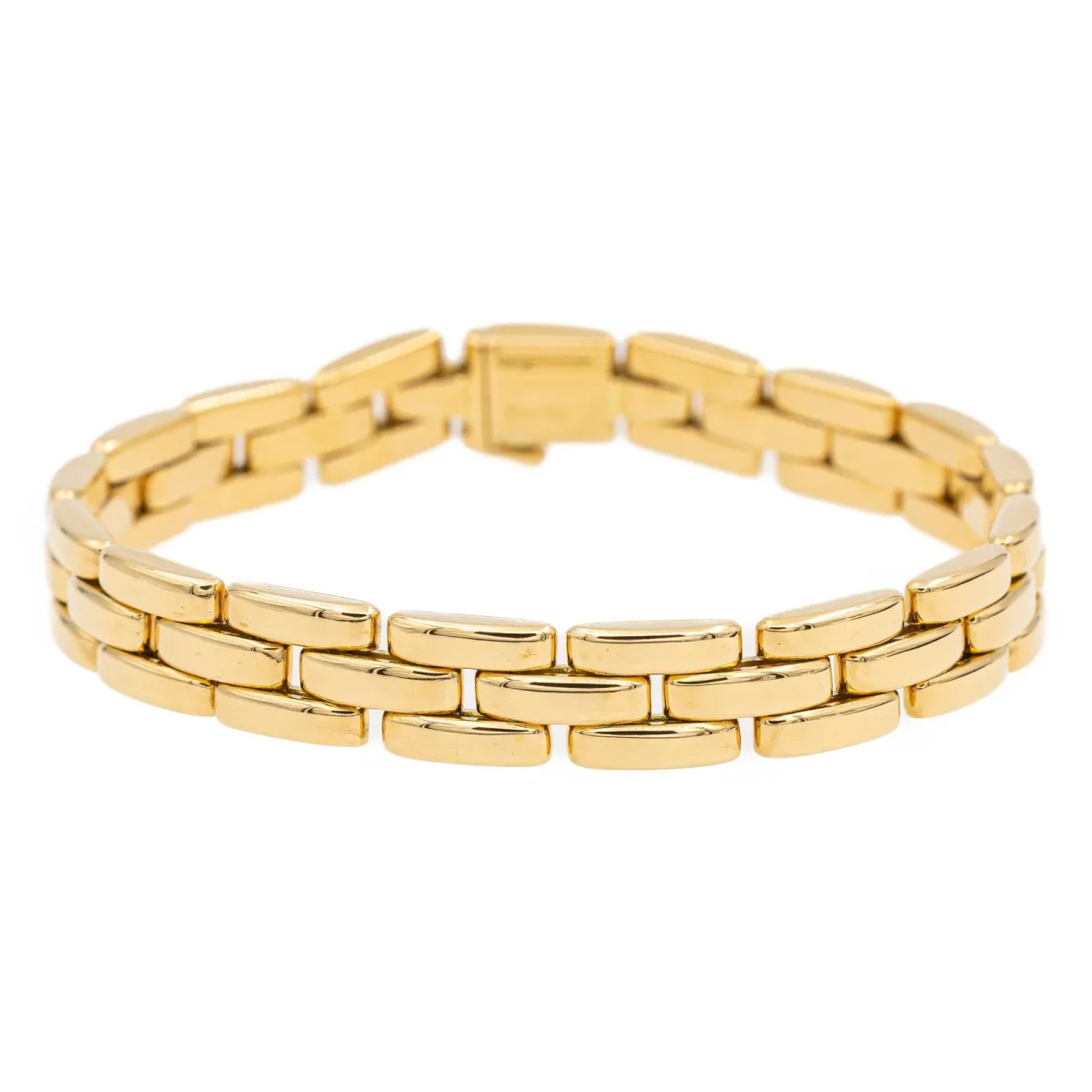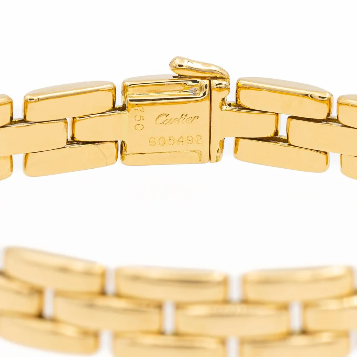 Bracelet signé de la maison Cartier, en or jaune 750 millièmes (18 carats), maille panthère, longueur: 18 cm, largeur: 0,84 cm, épaisseur: 0,28 cm, longueur d’un maillon: 0,97 cm, poids total: 40,07 g, numéroté: 605492, écrin Cartier d’origine, poinçon tête d’aigle, excellent état