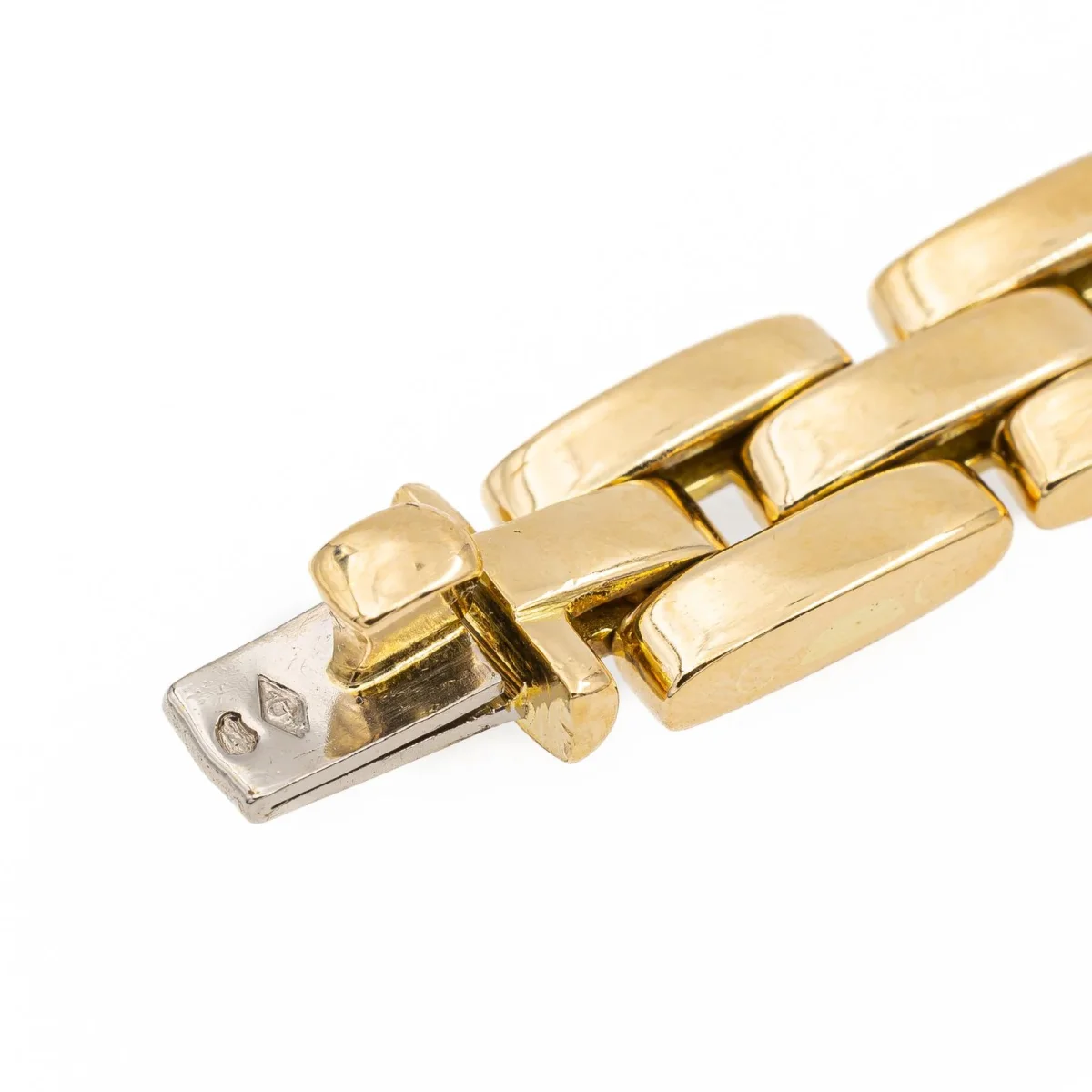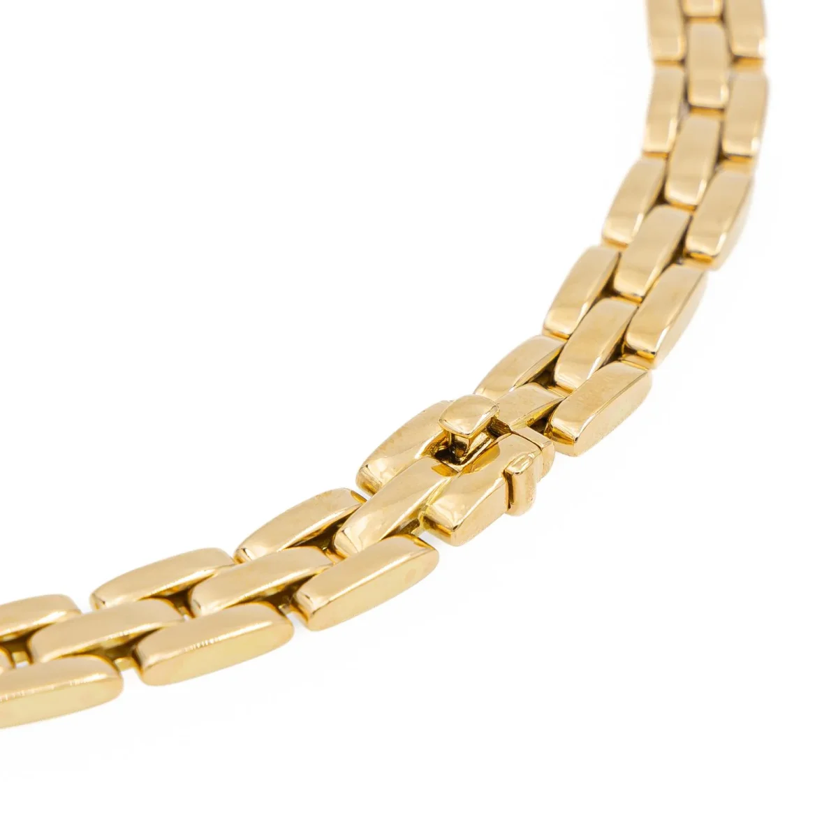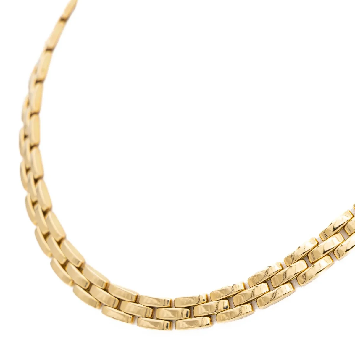 Collier signé de la maison Cartier, en or jaune 750 millièmes (18 carats), maille panthère, longueur: 42 cm, largeur: 0,82 cm, épaisseur: 0,27 cm, poids total: 86,76 g, numéroté: 607881, écrin Cartier d’origine, poinçon tête d’aigle, excellent état