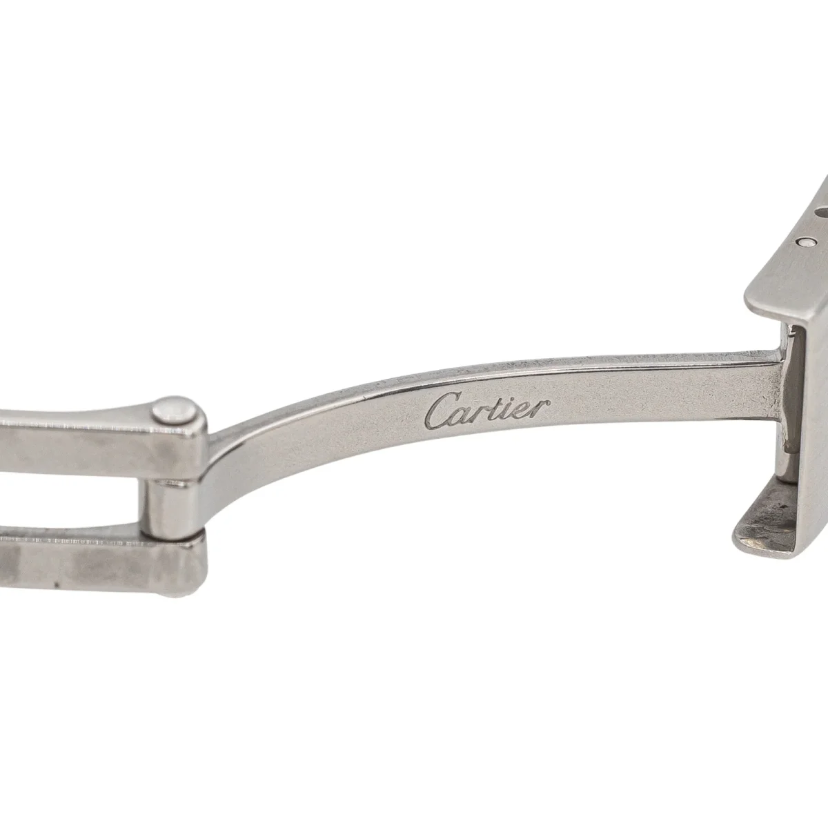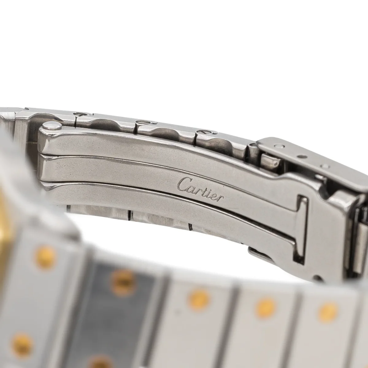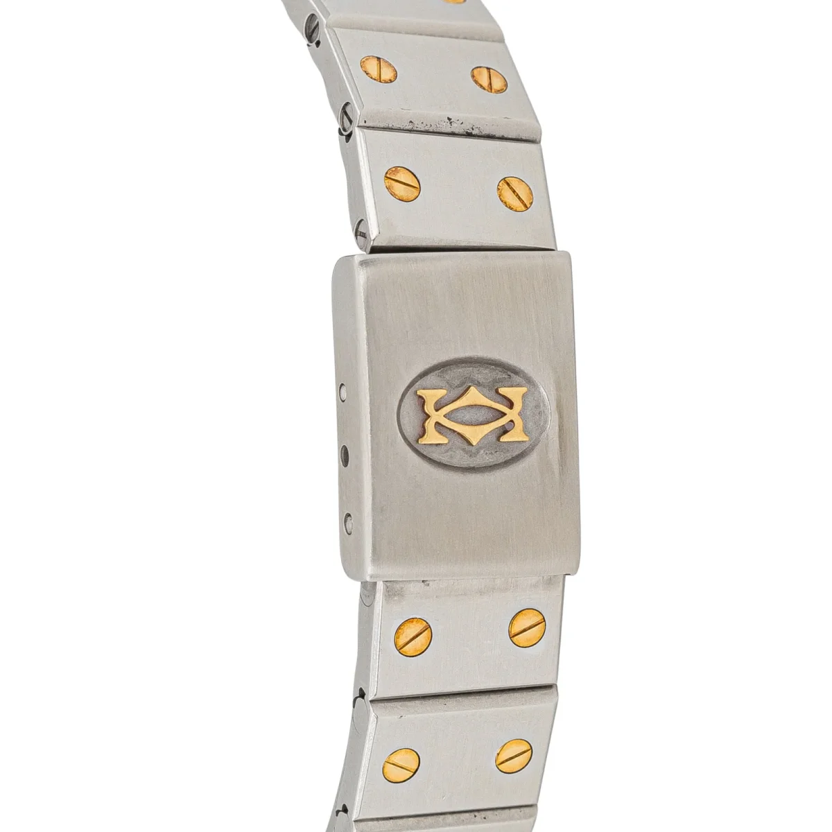 Montre Cartier modèle Santos octogonale or jaune et acier, n°série 090706592, cadran blanc à chiffre romain, mouvement mécanique à remontage automatique, boitier 25mm, verre saphir, bracelet acier boucle déployante (Taille poignet 17cm Largeur bracelet 1cm) poids total 48,08 g, poche et certificat d’origine, année 1979, Excellent état