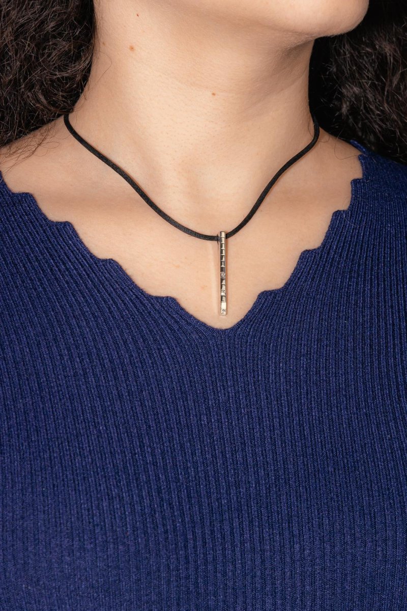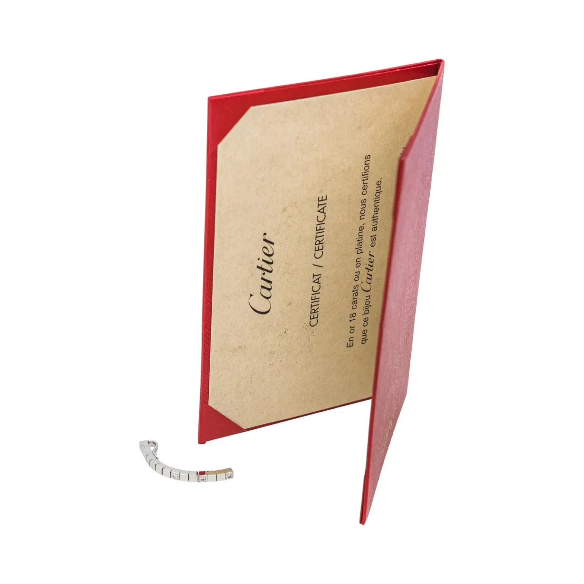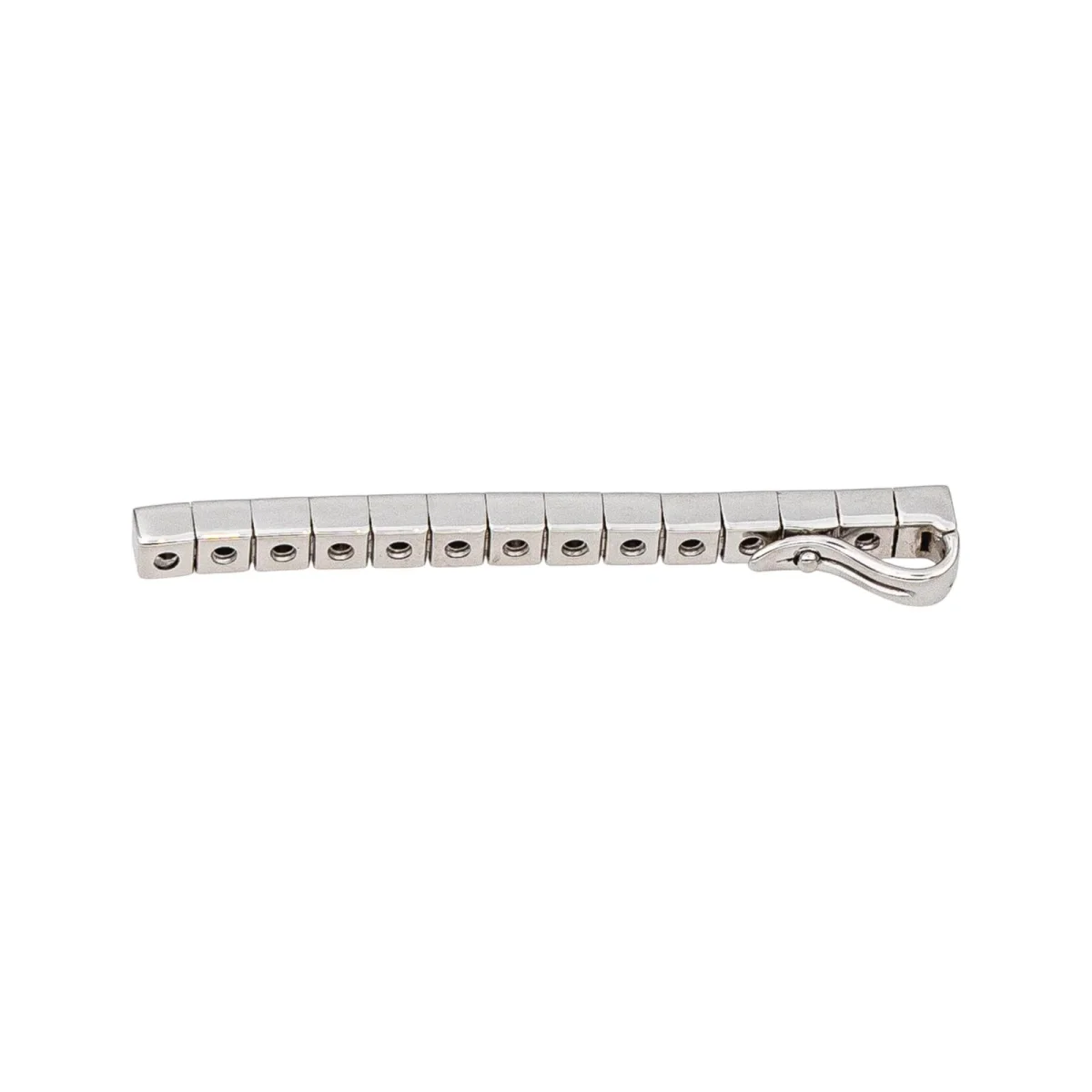 Pendentif signé de la Maison Cartier en or blanc 750 millièmes (18 carats), modèle Lanière, serti de 3 diamants, environ G-VS, d’un poids total d’environ 0,09 ct, (chaque diamant d’un poids d’environ 0,03 ct), dimensions : 4,00 cm x 0,30 cm, poids total : 4,17 g, poinçon Saint Bernard, vendu avec certificat d’authenticité de la marque, numéroté : NP2599, excellent état