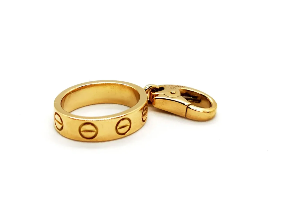 Pendentif signé de la maison Cartier, collection Love, en or jaune 750 millièmes (18 carats) testé, dimensions avec le mousqueton: 2,61 cm x 0,32 cm, poids total: 2,90 g, signé et numéroté: EY6886, excellent état