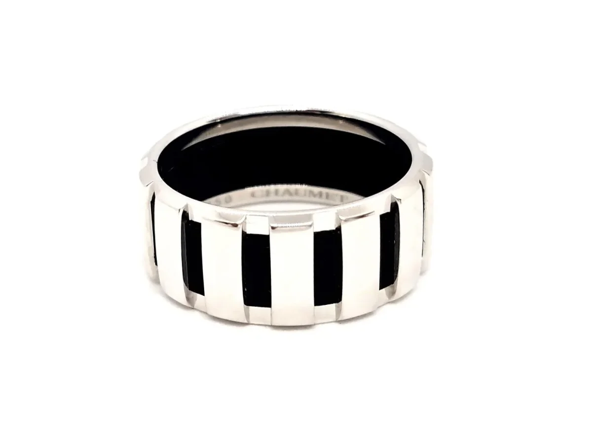 Bague signée de la maison Chaumet, modèle « class one », en or blanc 750 millièmes (18 carats), tour de doigt: 64, largeur: 1 cm, poids total: 9,60 g, poinçon tête d’aigle, numérotée: 923652, prix neuf: 2150€, excellent état