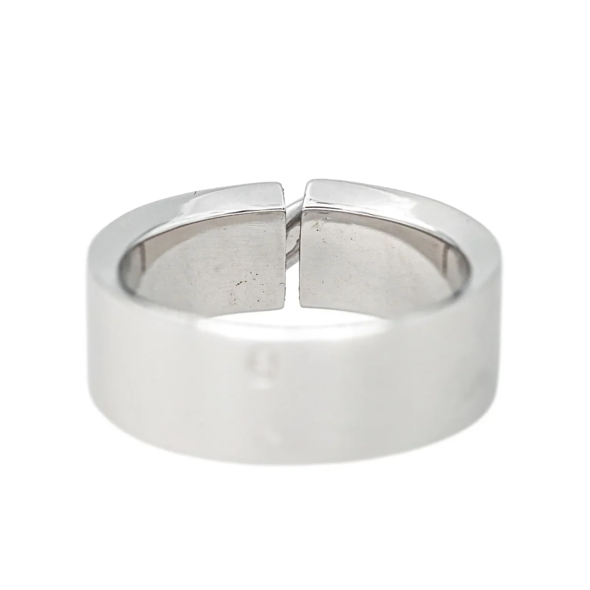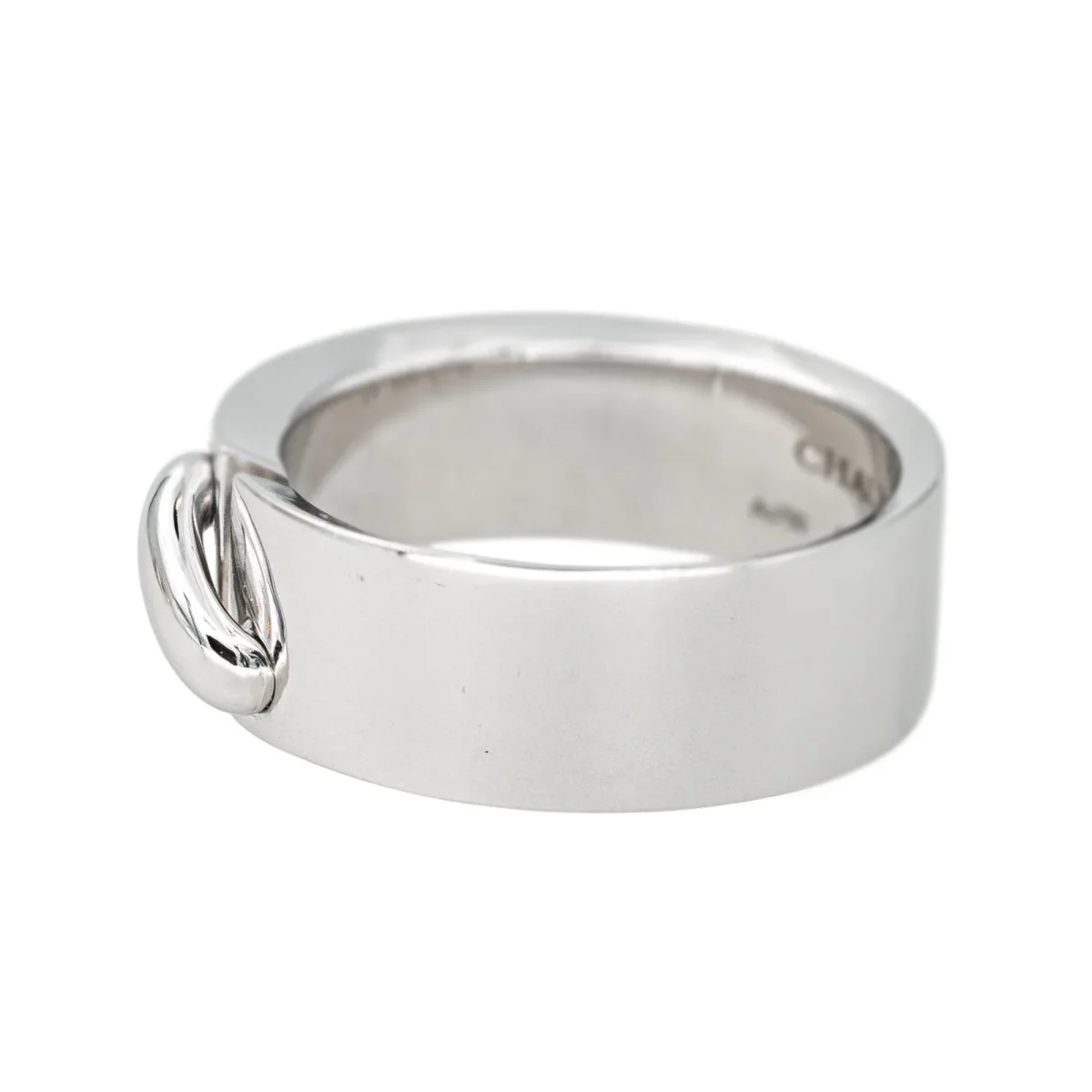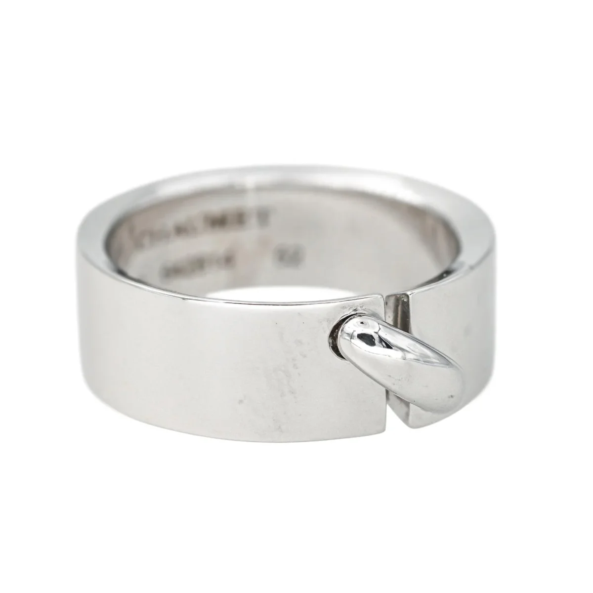 Bague signée de la Maison Chaumet en or blanc 750 millièmes (18 carats), modèle Lien, largeur sur le dessus : 0,70 cm, tour de doigt : 52, poids total : 10,07 g, poinçon tête d’aigle, vendue avec écrin d’origine et d’époque, numérotée : 4660882RV, excellent état