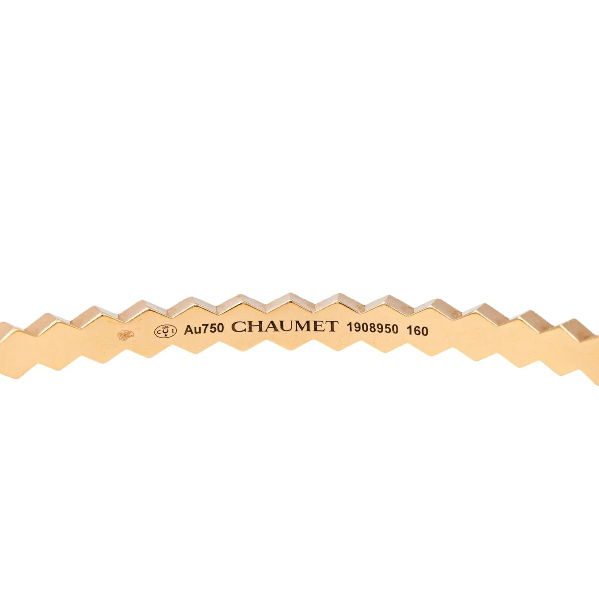 Bracelet signé de la Maison Chaumet, collection Bee My Love, en or rose 750 millièmes (18 carats), taille 16 cm, largeur : 0,4 cm, poids total : 15,21 g, numéroté :1908950, poinçon tête d’aigle, full set, excellent état, jamais porté