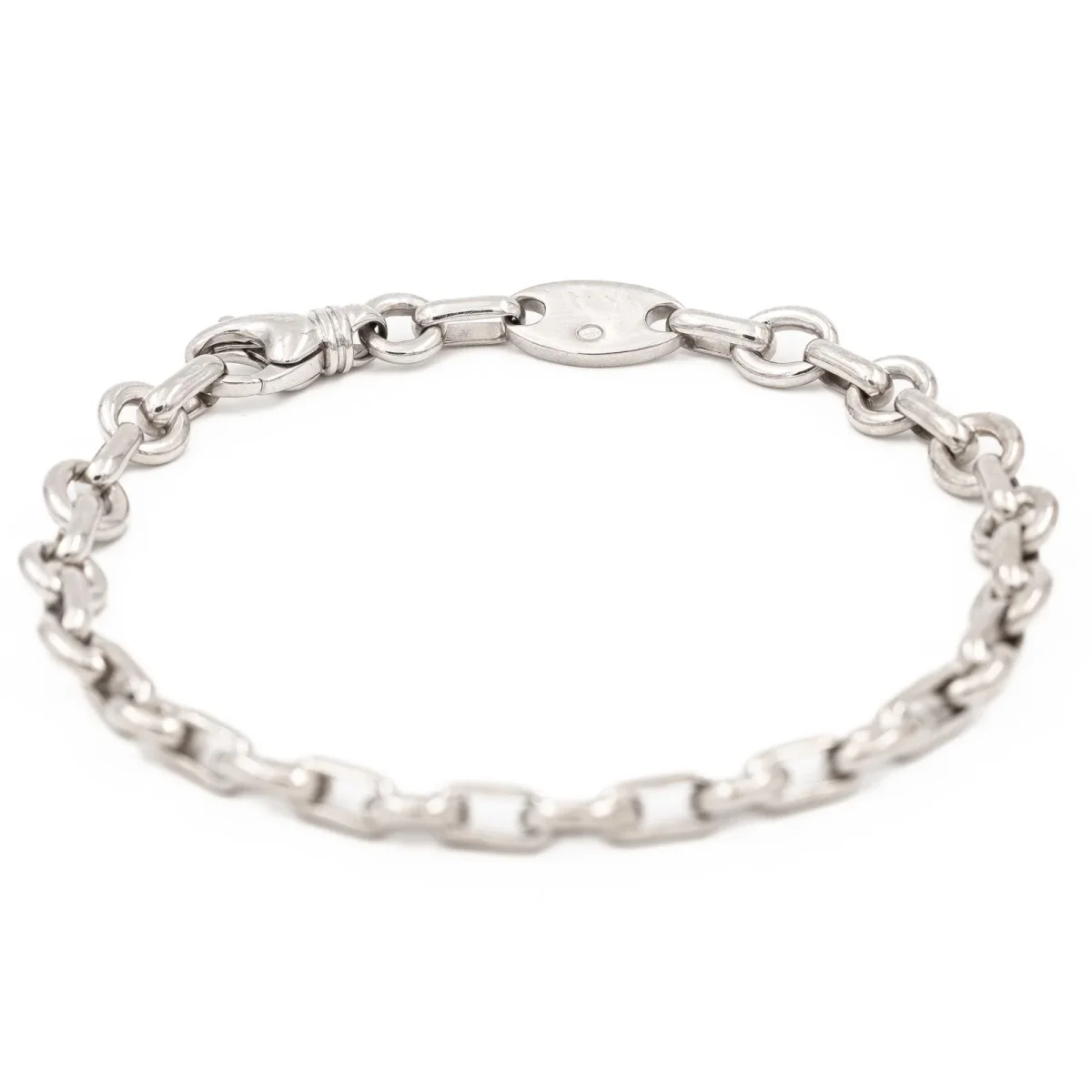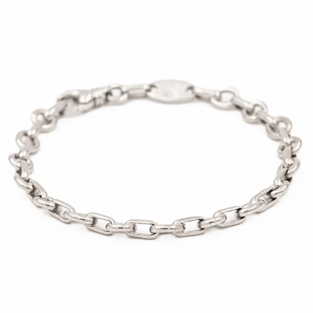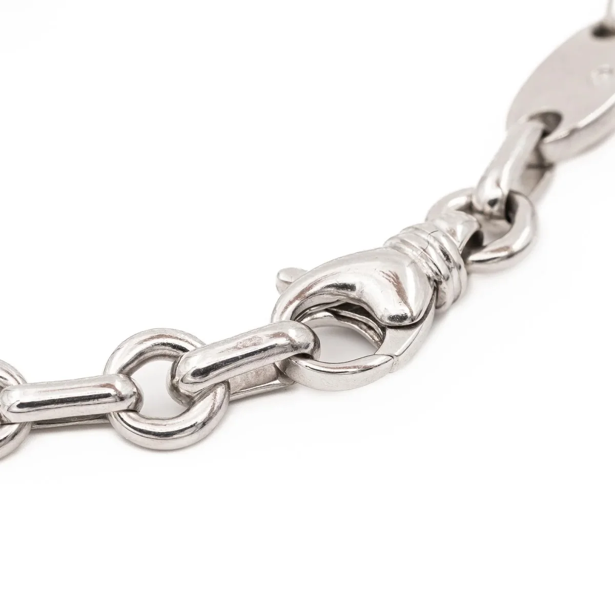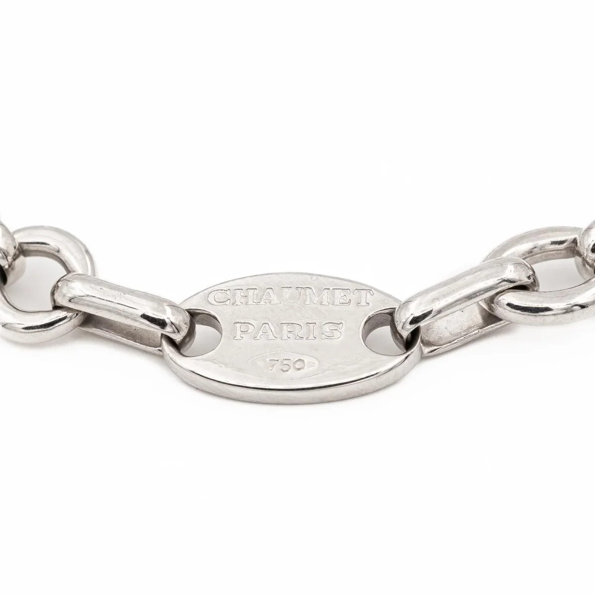 Bracelet signé Chaumet en or blanc 750 millièmes (18 carats), maille souple, longueur: 19 cm, largeur: 0,63 cm, poids total: 18,37 g, fermoir mousqueton, poinçon tête d’aigle, excellent état