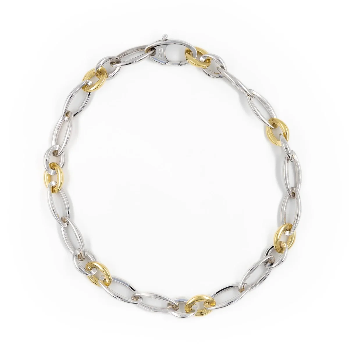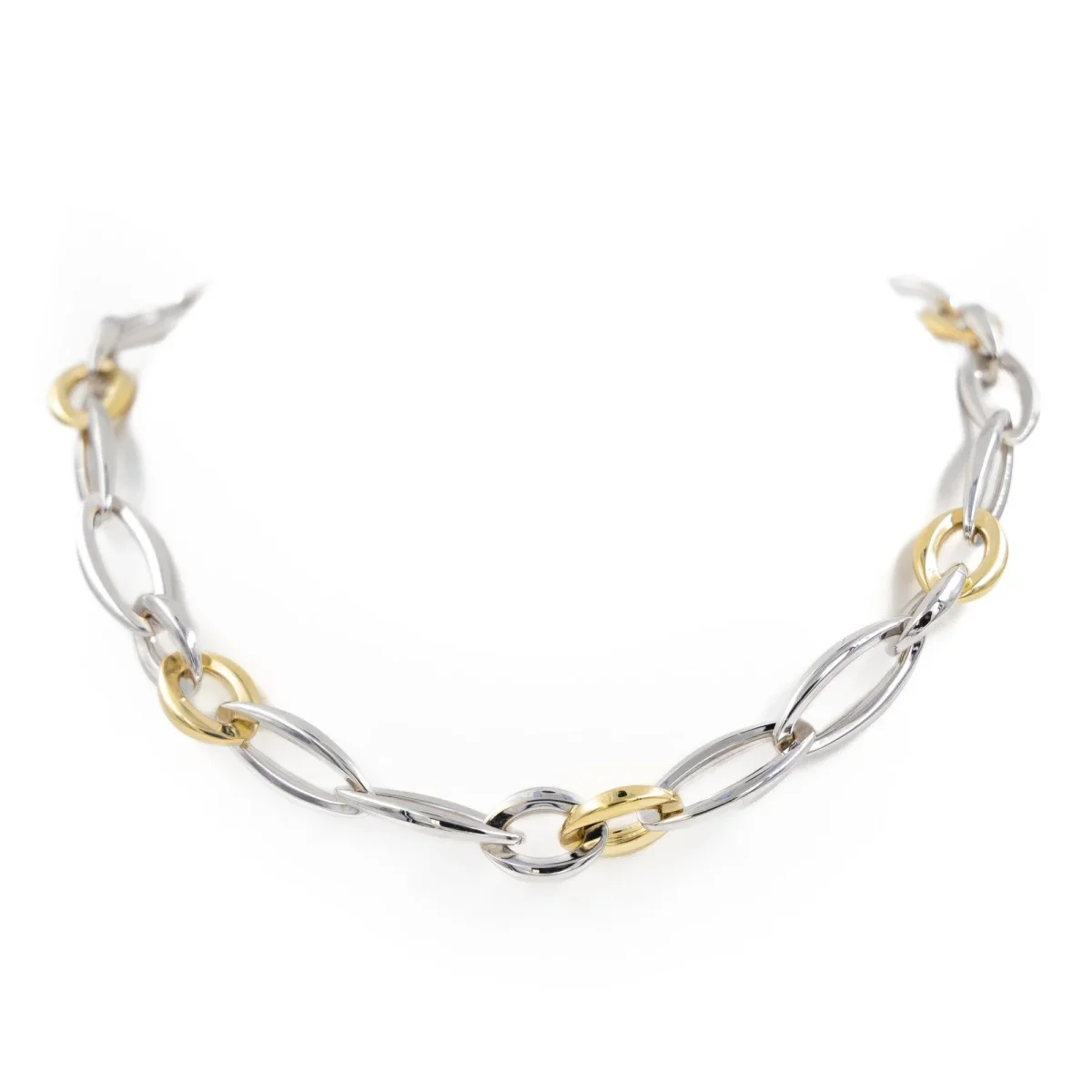 Collier signé de la Maison Chimento en or jaune et blanc 750 millièmes (18 carats), maille alternée, longueur: 52 cm, largeur: 1,47 cm, poids total: 44,20 g, poinçon tête d’aigle, excellent état