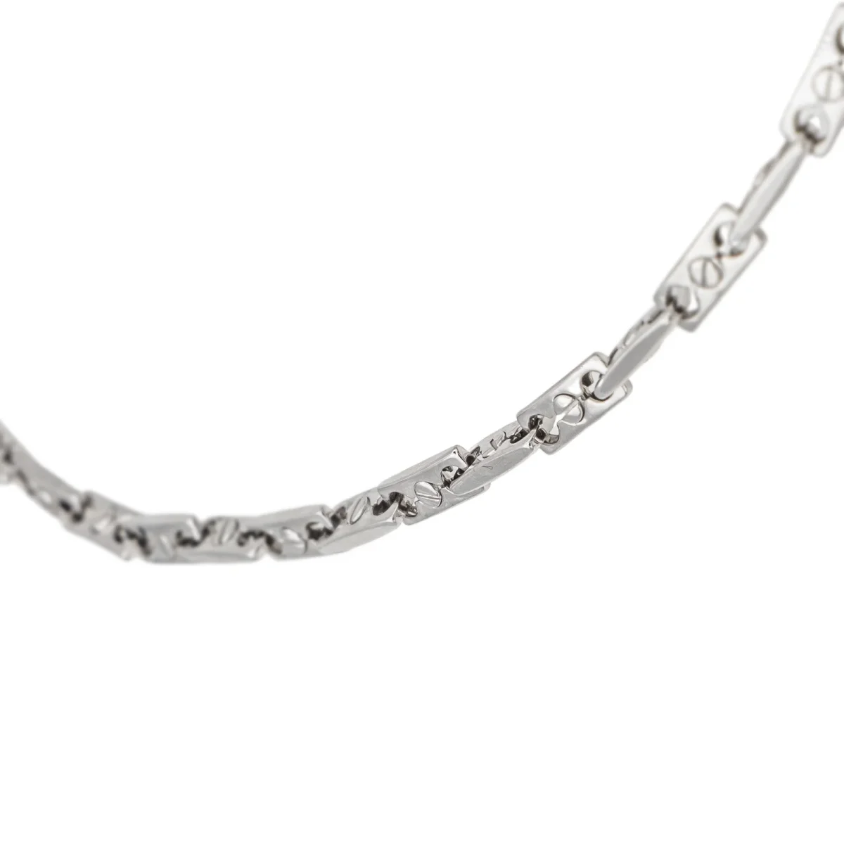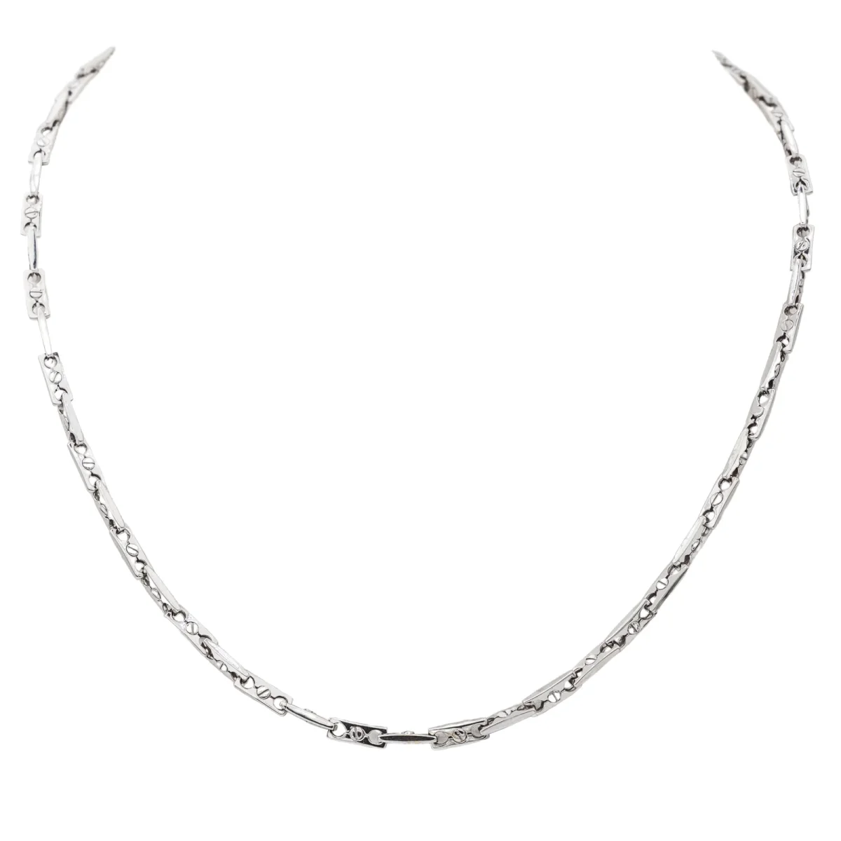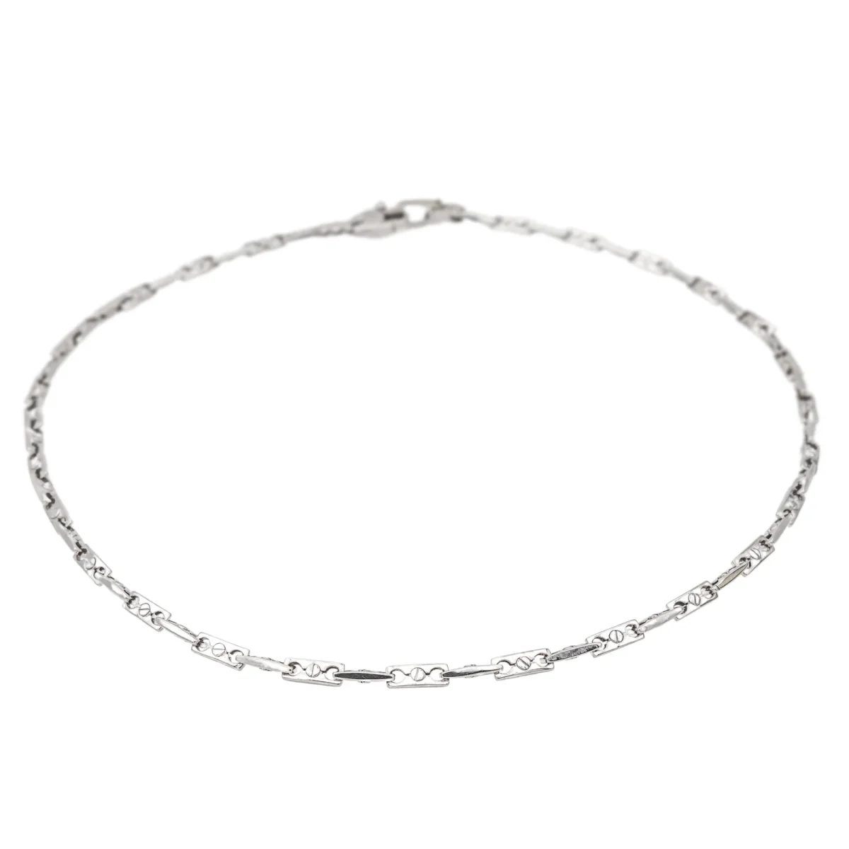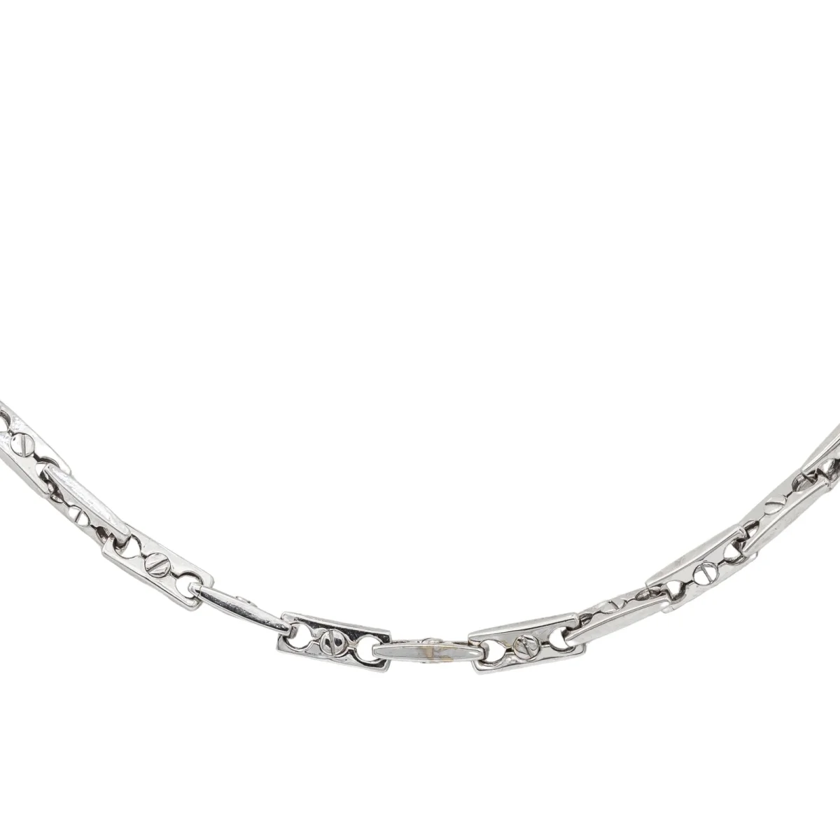 Collier en or blanc 750 millièmes (18 carats), signé de la Maison Chimento, numéroté 408VI, maille souple, longueur: 50 cm, épaisseur: 0,40 cm, poids total: 30,15 g, poinçon tête d’aigle, excellent état