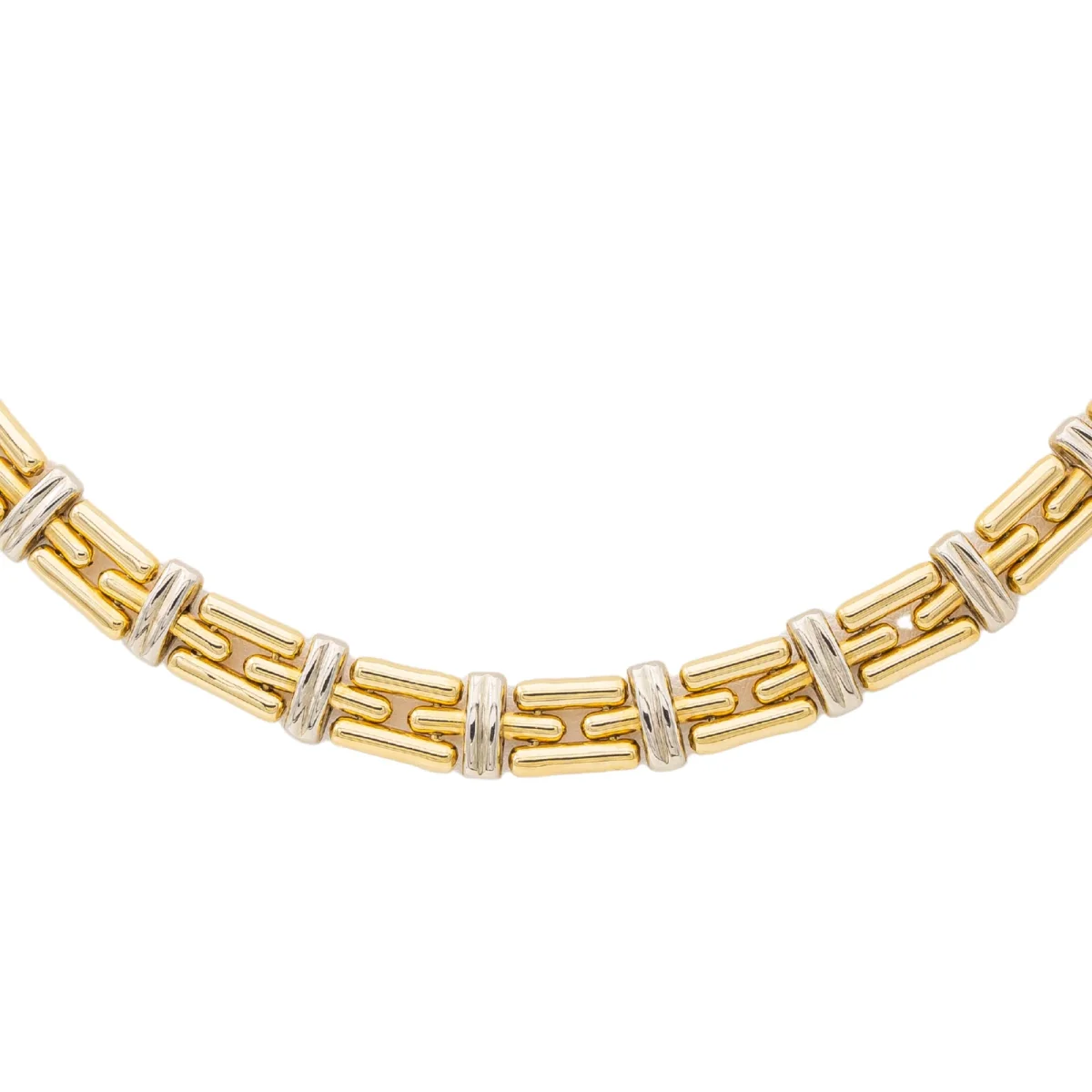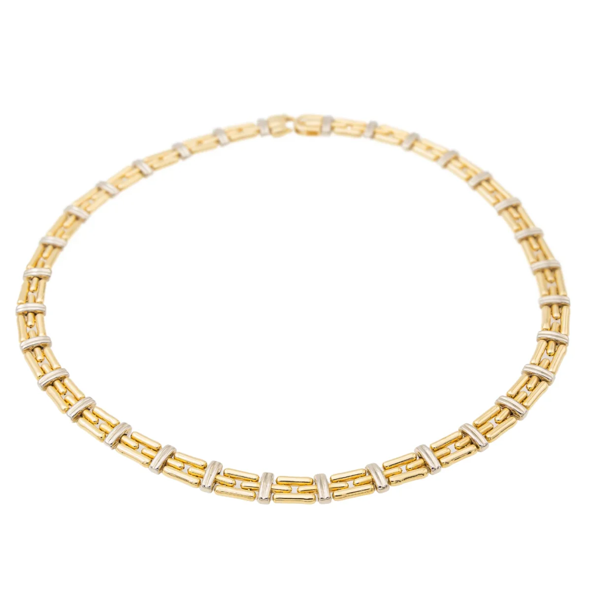 Collier en or jaune et blanc 750 millièmes (18 carats), signé de la Maison Chimento, numéroté 4U8VI, maille souple, longueur: 41,5 cm, largeur: 0,85 cm, épaisseur: 0,4 cm, poids total: 52,67g, poinçon tête d’aigle, excellent état