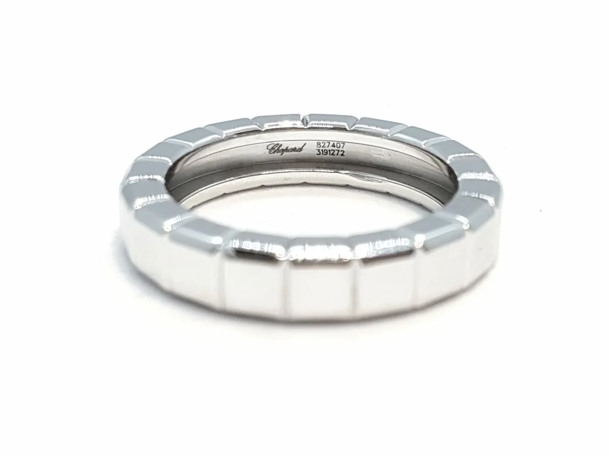 Bague signée de la maison Chopard, collection Ice Cube, en Or blanc 750 millièmes (18 carats), Taille de doigt: 52, Largeur: 0,4 cm, Poids total: 7,96 g, Prix neuf: 1360€, Poinçonné, Excellent état