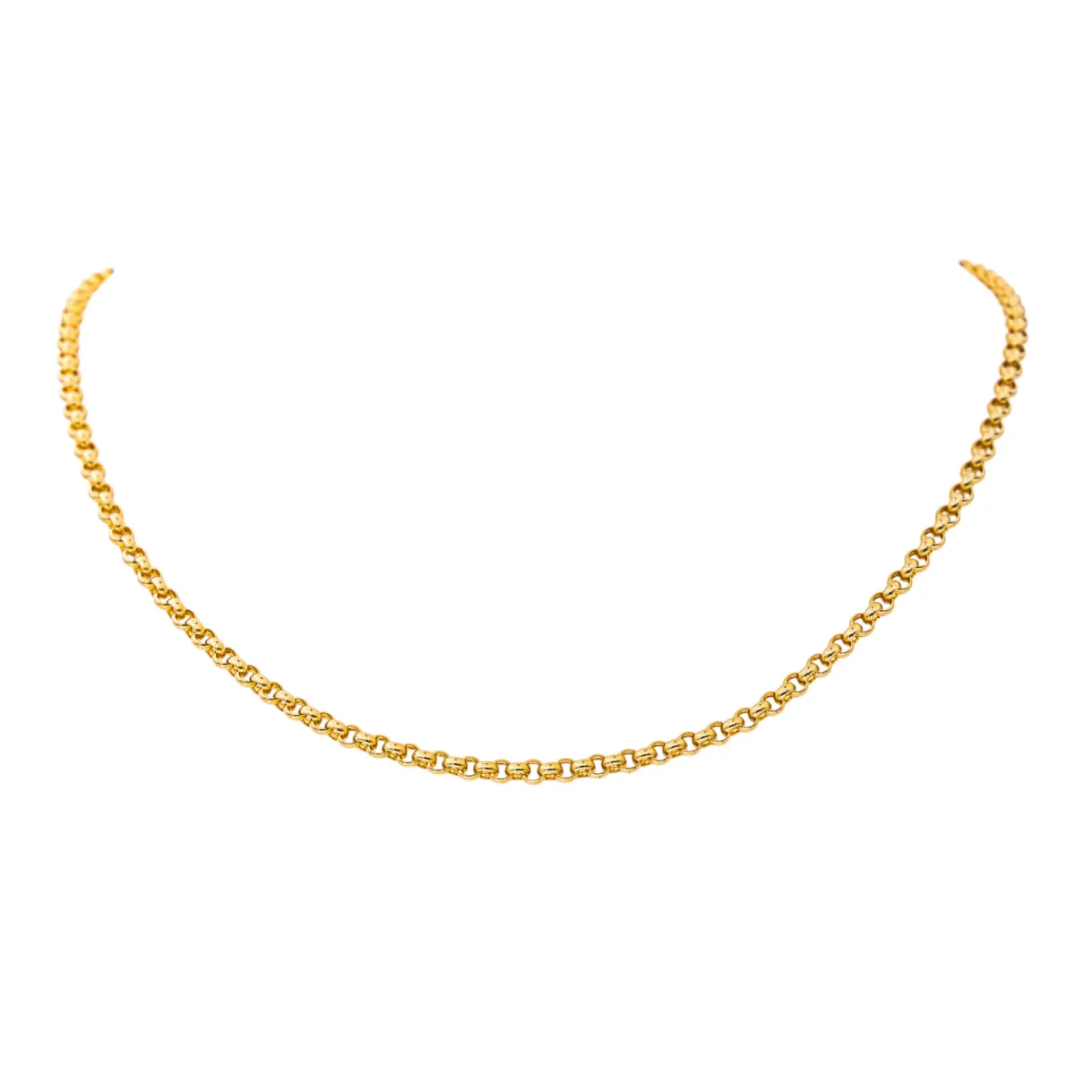 Chaine signée de la Maison Chopard en or jaune 750 millièmes (18 carats), maille jaseron, longueur : 42,50 cm, largeur : 0,20 cm, épaisseur : 0,10 cm, poids total : 17,54 g, poinçon Saint Bernard, excellent état