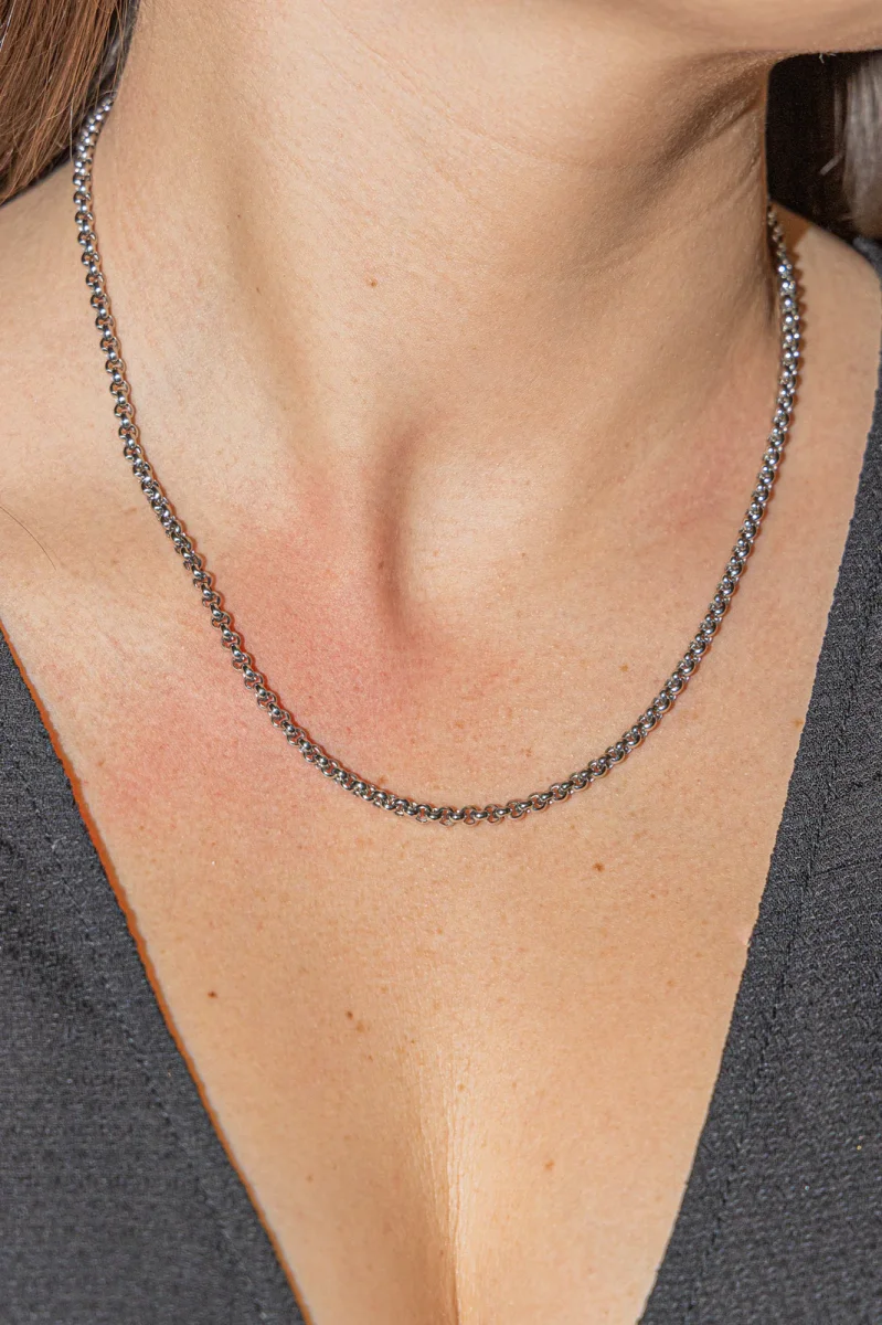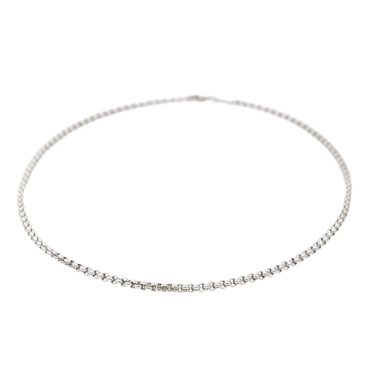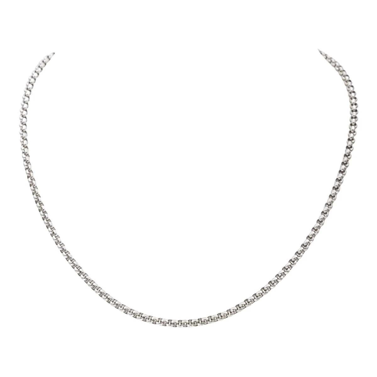 Chaine signée de la Maison Chopard en or blanc 750 millièmes (18 carats), maille jaseron, longueur: 47,00 cm, largeur: 0,34 cm, poids total: 20,39 g, poinçon Saint Bernard, excellent état