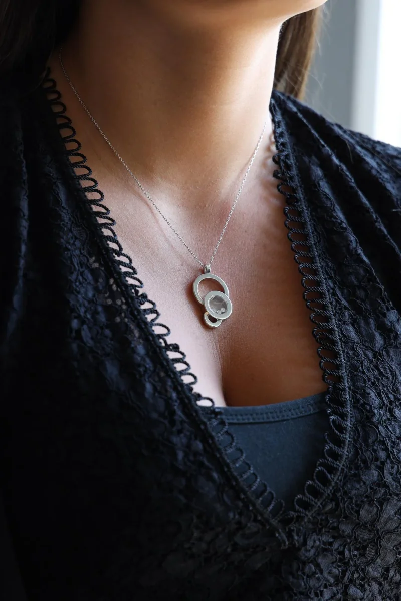 Pendentif signé de la Maison Chopard en or blanc 750 millièmes (18 carats), collection Happy Diamonds, entre 2 glaces saphirs, 3 diamants mobiles, taille brillant, d’environ 0,03 ct chacun, poids total diamants environ : 0,09 ct, environ E-VVS, dimensions : 3,57 cm X 2,01 cm, numéroté : 796984-8146885, poids total : 11,28 g, poinçon Saint-Bernard, excellent état. Vendu sans la chaine
