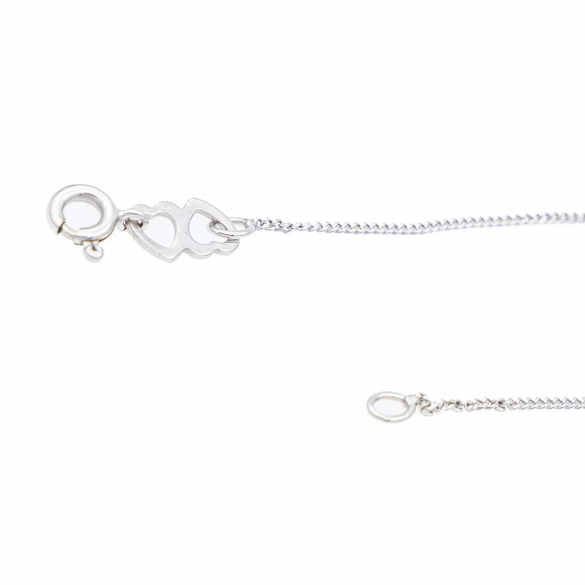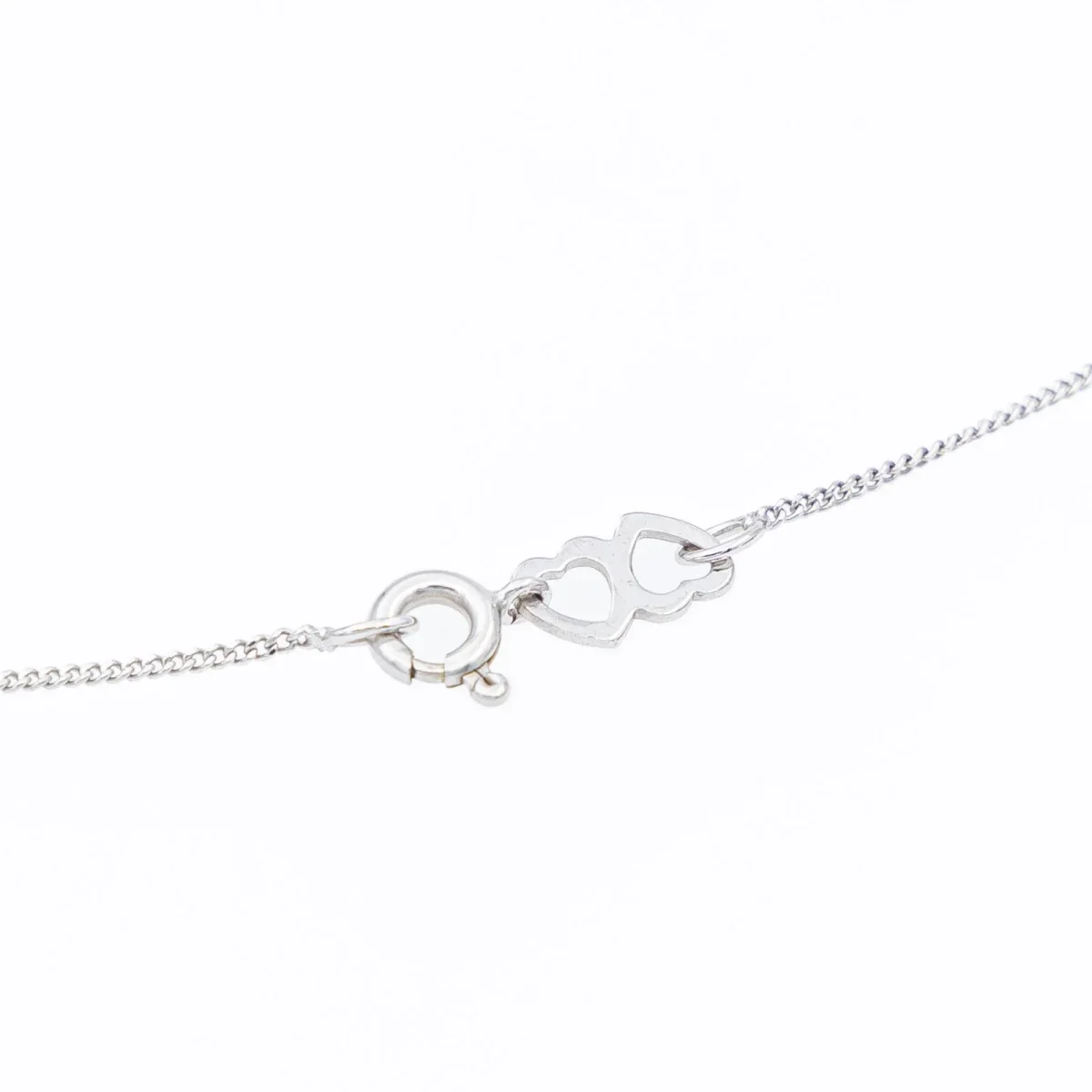 Chaine en or blanc 750 millièmes (18 carats)testé, motif 2 coeurs entrelacés adjacents au fermoir, longueur: 43 cm, poids total: 1,78 g, excellent état