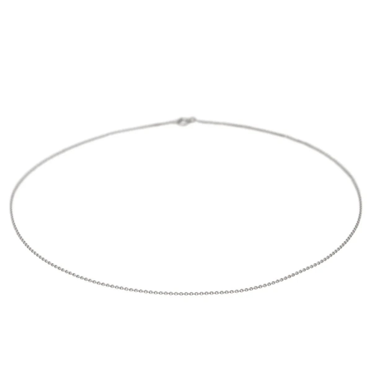 Chaine en or blanc 750 millièmes (18 carats) testé, maille forçat, longueur : 51,50 cm, épaisseur : 0,11 cm, poids total : 2,23 g, excellent état