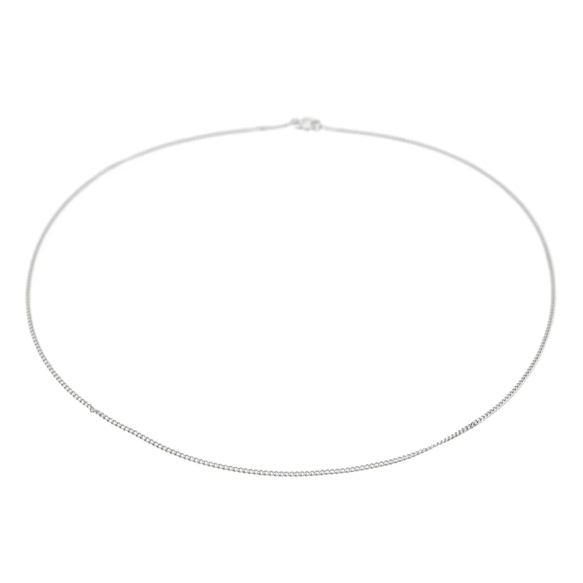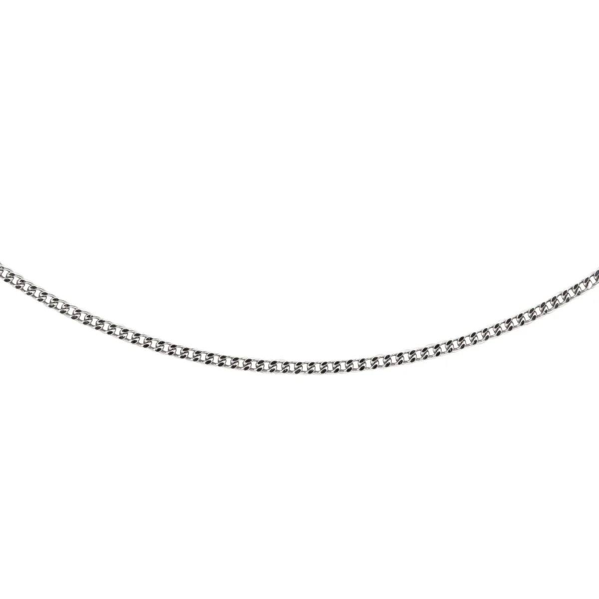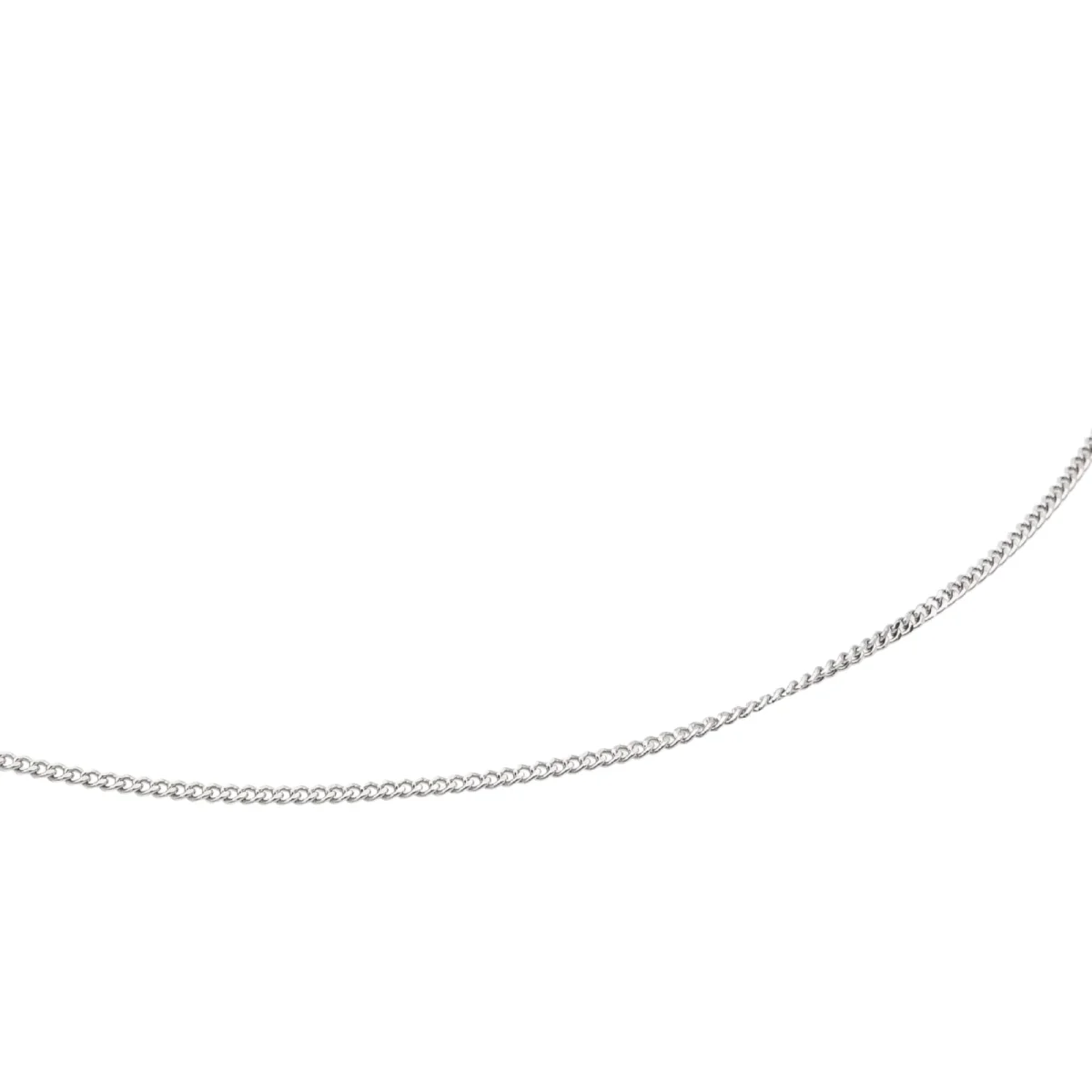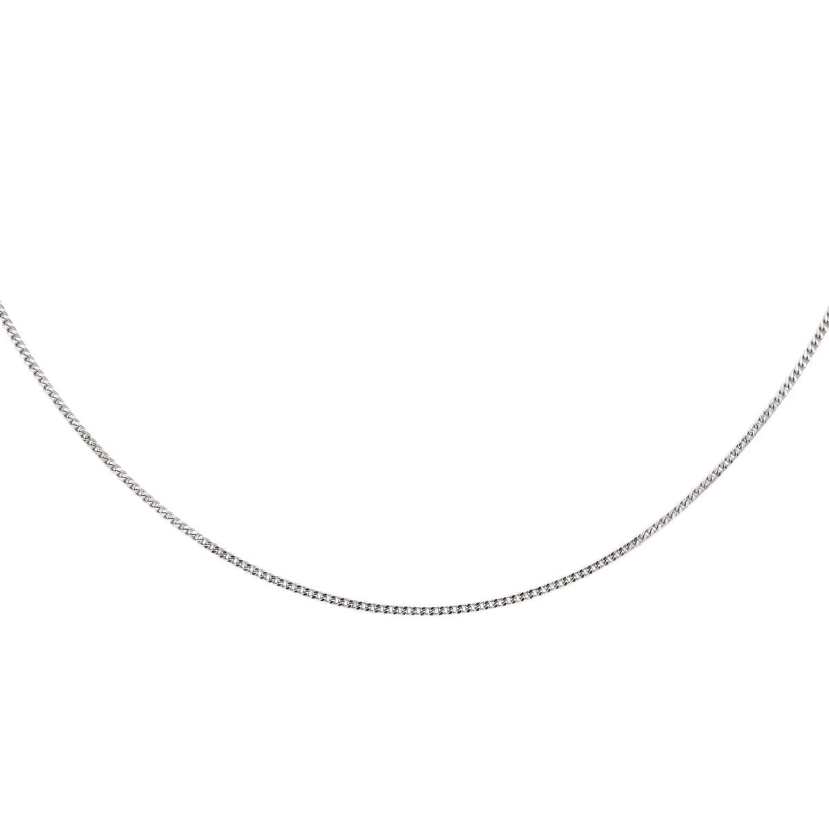 Chaine en or blanc 750 millièmes (18 carats), maille gourmette, longueur: 45,5 cm, largeur: 0,15 cm, épaisseur: 0,08 cm, poids total: 4,15 g, poinçon tête d’aigle, excellent état
