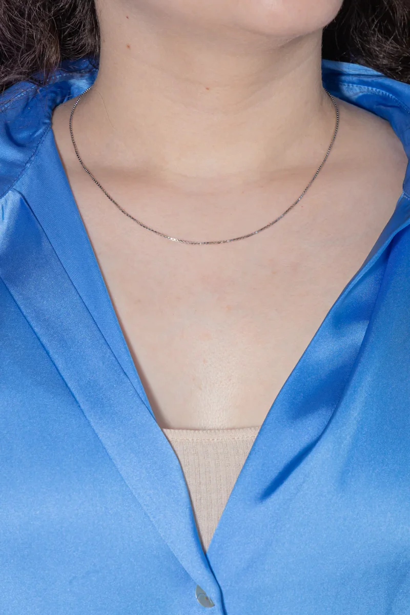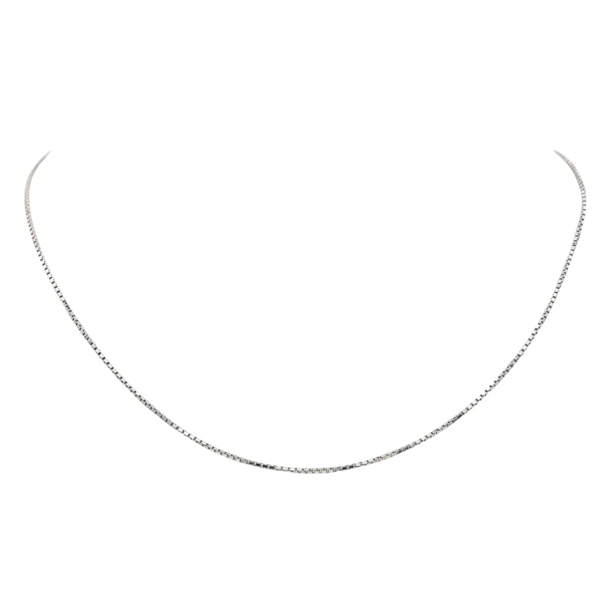 Chaîne en or blanc 750 millièmes (18 carats), maille vénitienne, longueur : 42,00 cm, largeur : 0,01 cm, poids total : 3,70 g, poinçon hibou, excellent état