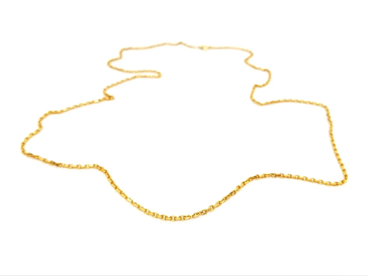 Collier en or jaune 750 millièmes (18 carats), chaîne maille forçat, longueur: 58 cm, largeur: 0,18 cm: poids total: 7,02 g, poinçon tête d’aigle, excellent état