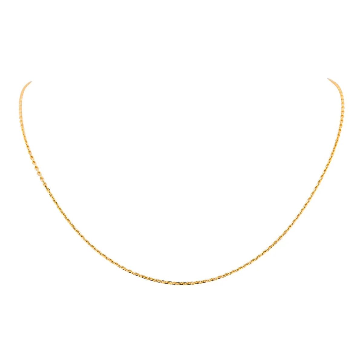 Chaîne en or jaune 750 millièmes (18 carats), maille forçat, longueur : 45,50 cm, largeur : 0,16 cm, poids total : 4,90 g, poinçon tête d’aigle, excellent état
