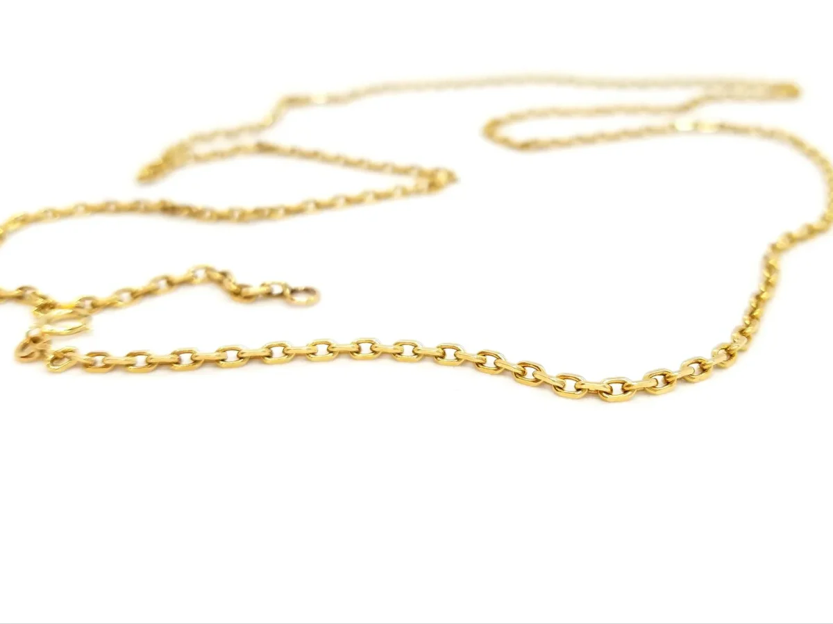 Collier en or jaune 750 millièmes (18 carats), chaîne maille forçat, longueur: 62,5 cm, largeur: 0,21 cm, poids total: 9,92 g, poinçon tête d’aigle, excellent état