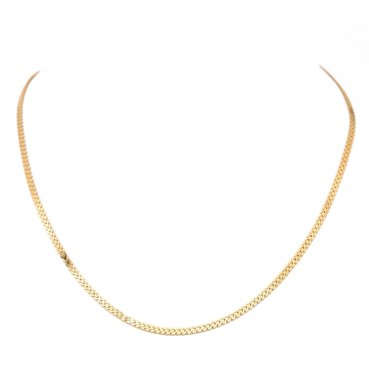 Chaine en or jaune 750 millièmes (18 carats), maille souple, longueur: 44,5cm, poids total: 8,16 g, poinçon hibou, excellent état