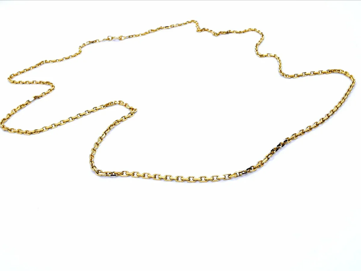 Collier en jaune 750 millièmes (18 carats), chaîne maille forçat, longueur: 61 cm, largeur: 0,18 cm, poids total: 9,16 g, poinçon tête d’aigle, excellent état