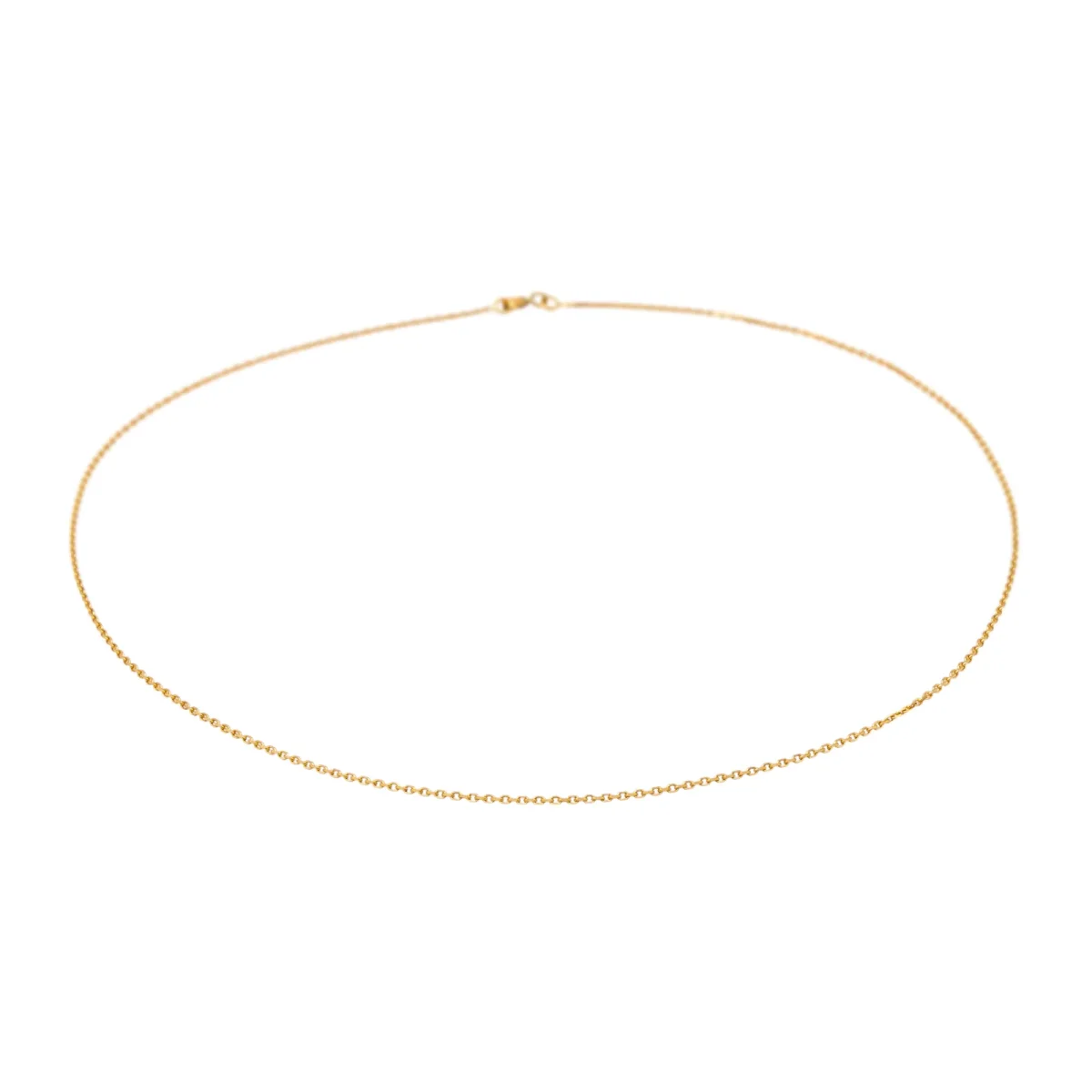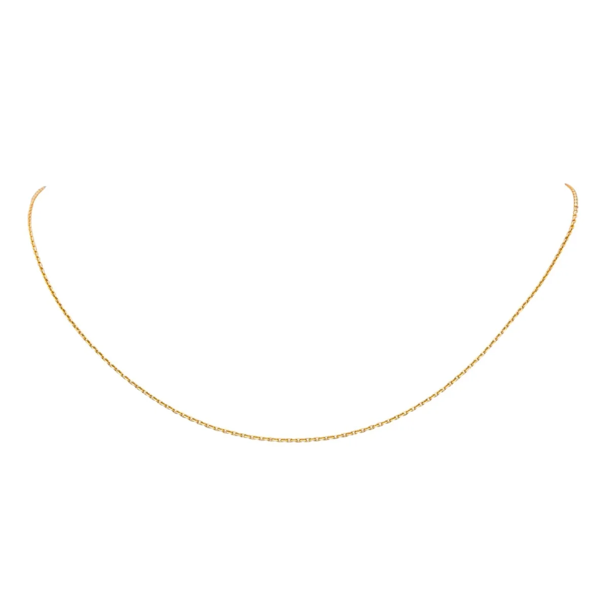 Chaîne en or jaune 750 millièmes (18 carats), maille forçat, longueur : 45,00 cm, largeur : 0,11 cm, poids total : 2,54 g, poinçon tête d’aigle, excellent état
