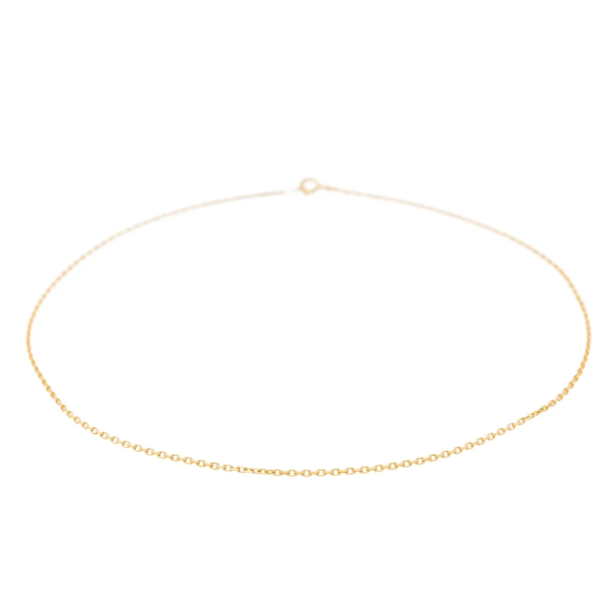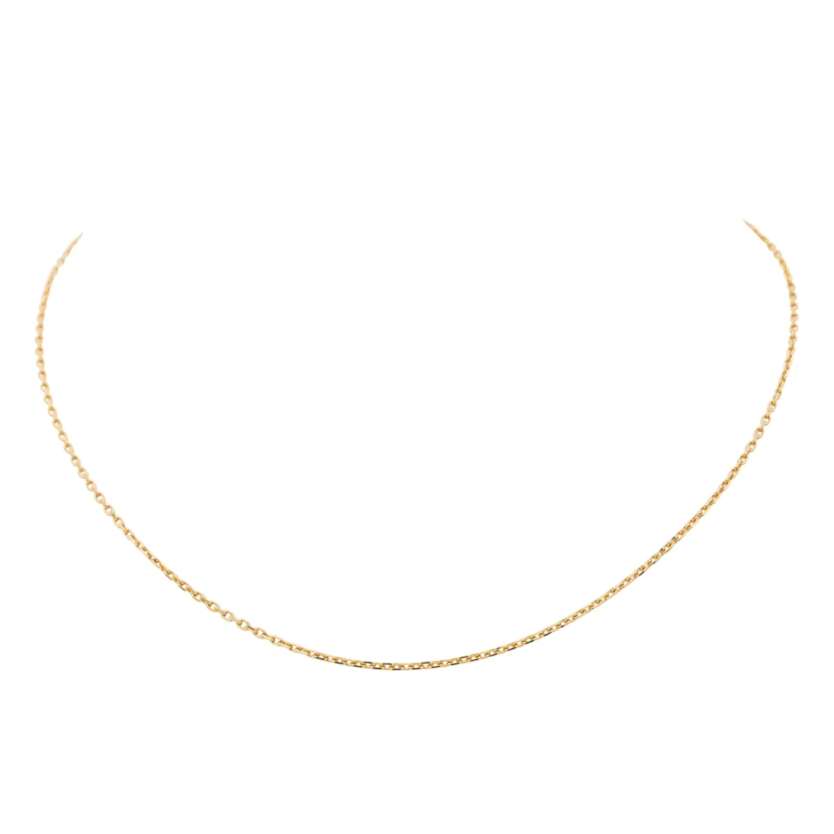 Chaîne en or jaune 750 millièmes (18 carats), maille forçat, longueur : 40,50 cm, largeur : 0,11 cm, poids total : 3,68 g, poinçon tête d’aigle, excellent état