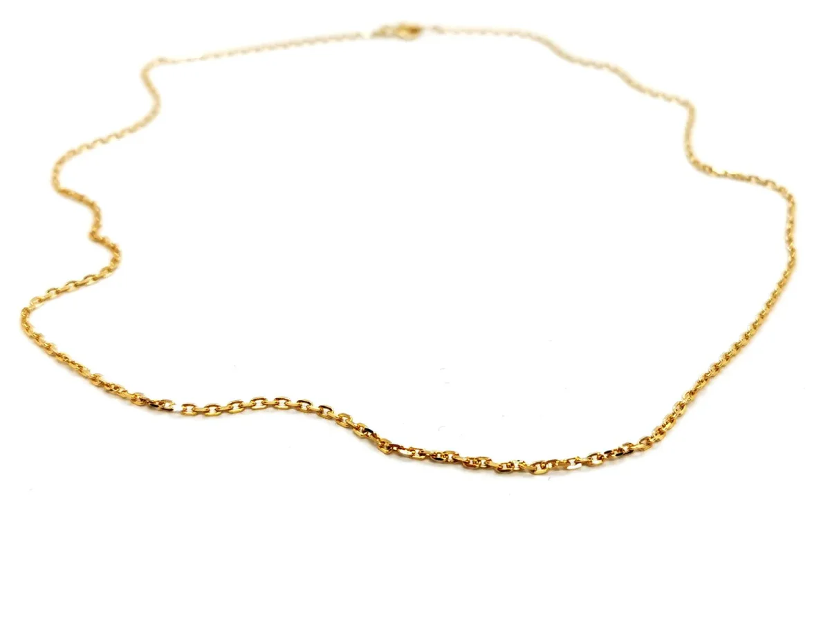 Chaîne en or jaune 750 millièmes (18 carats), maille forçat, longueur : 45,5 cm, largeur : 0,16 cm, poids total: 3,68 g, poinçonné tête d’aigle, excellent état.