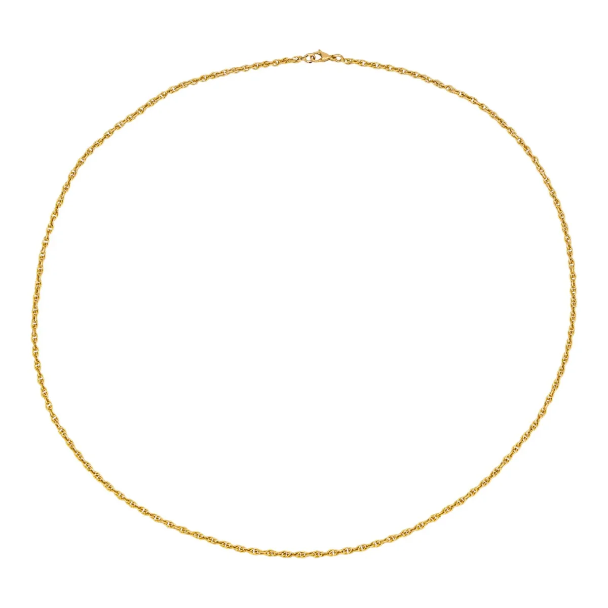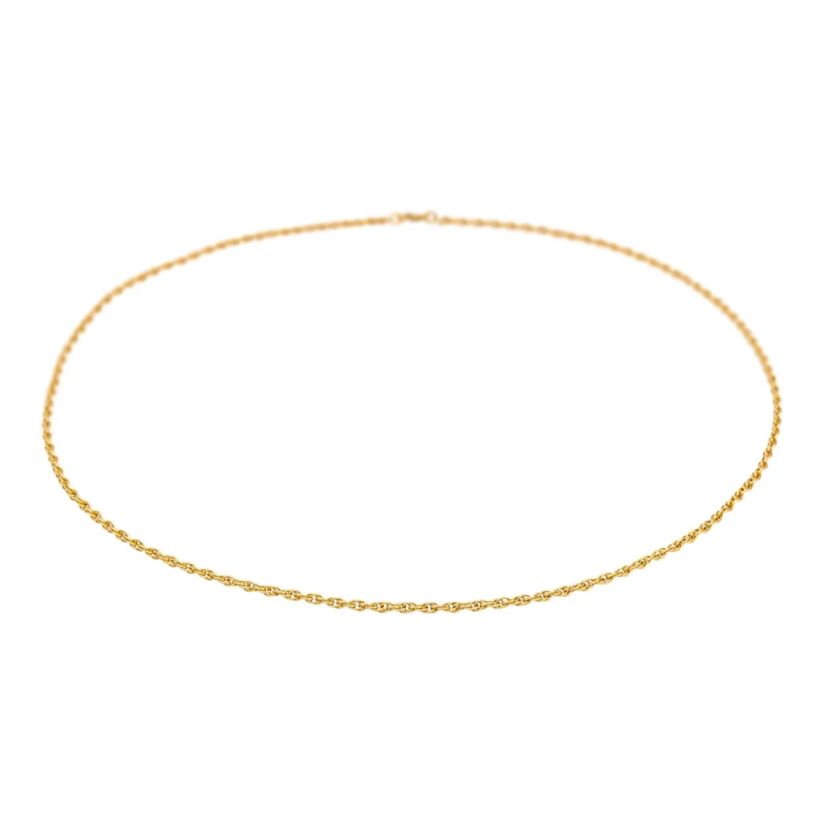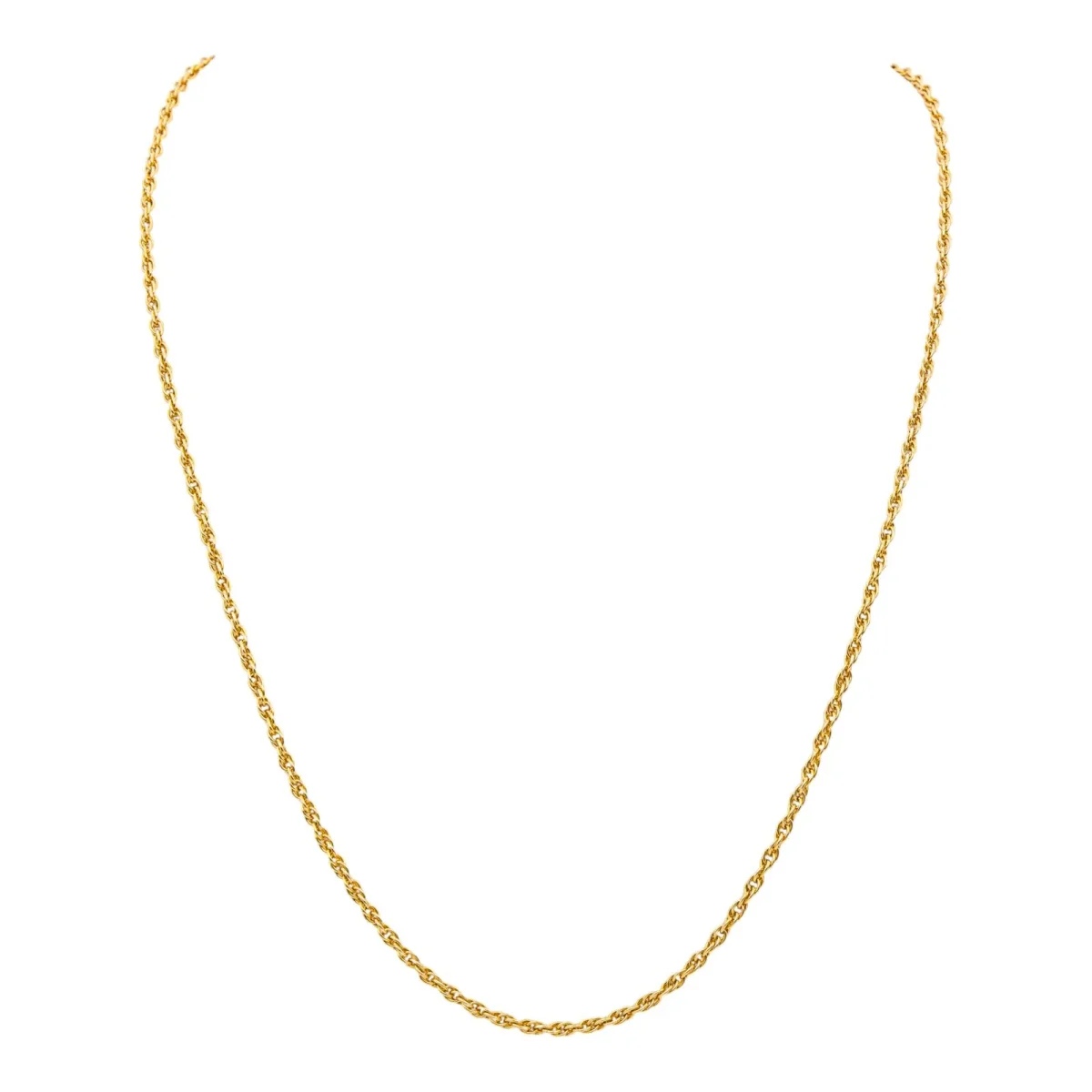 Collier en or jaune 750 millièmes (18 carats), maille torsadée, longueur : 67,00 cm, largeur : 0,24 cm, poids total : 20,04 g, poinçon tête d’aigle, excellent état
