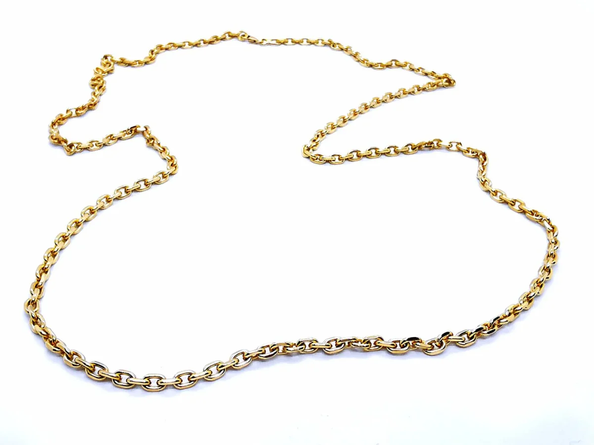 Collier en jaune 750 millièmes (18 carats), chaîne maille forçat, longueur: 76 cm, largeur: 0,36 cm, poids total: 38,27 g, poinçon tête d’aigle, excellent état