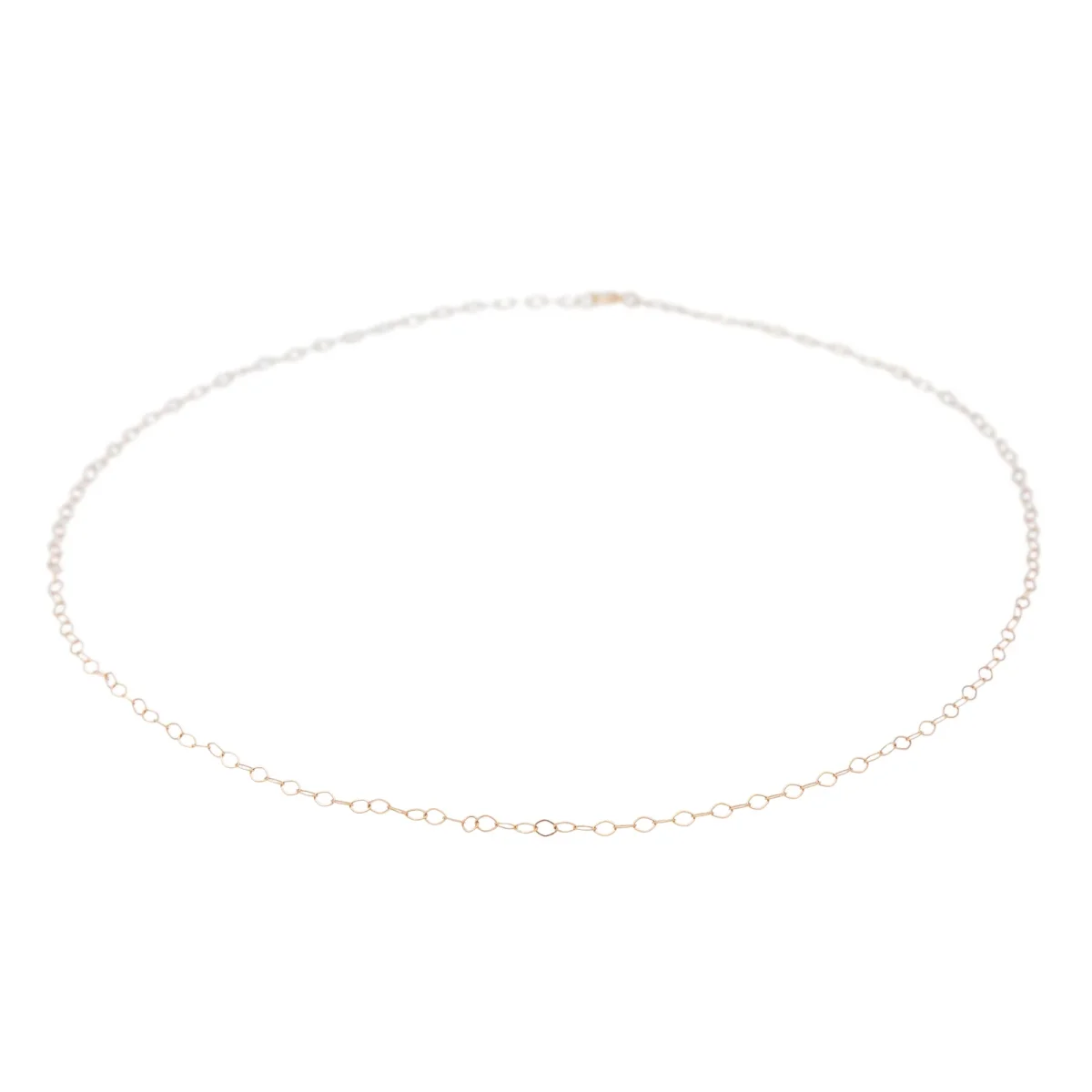 Chaine en or rose 750 millièmes (18 carats), testée, maille forçat, longueur : 40,00 cm, largeur : 0,20 cm, épaisseur : 0,20 cm, poids total : 1,00 g, excellent état