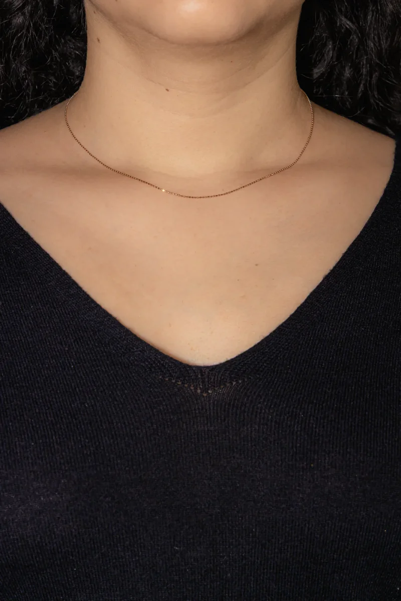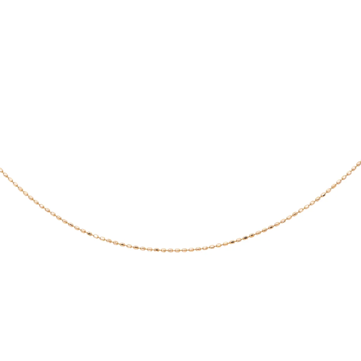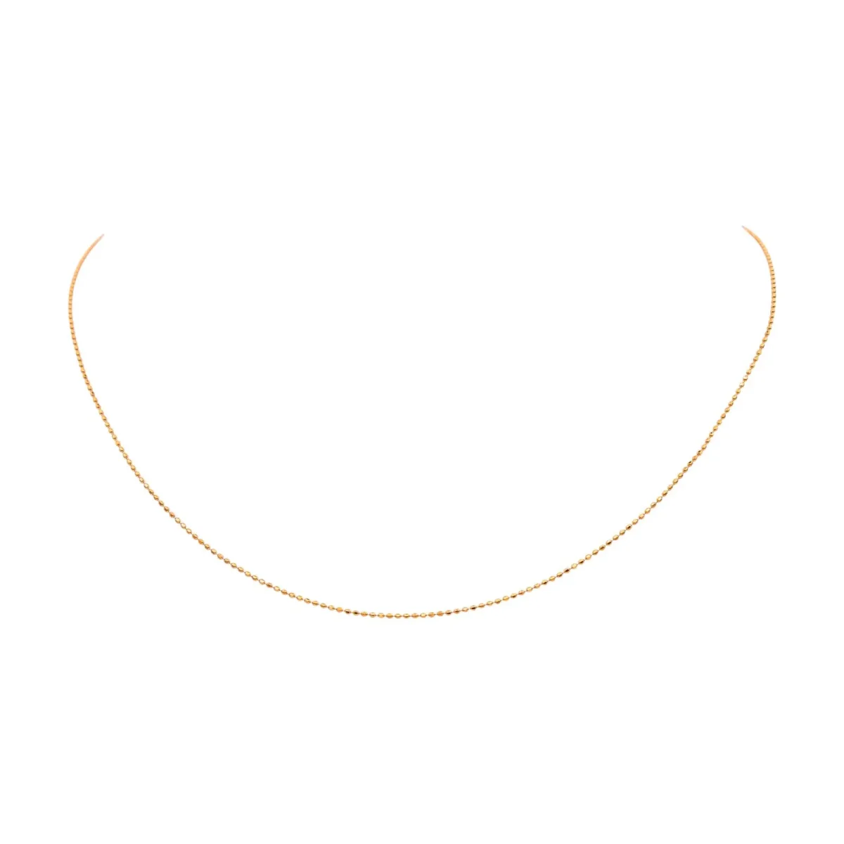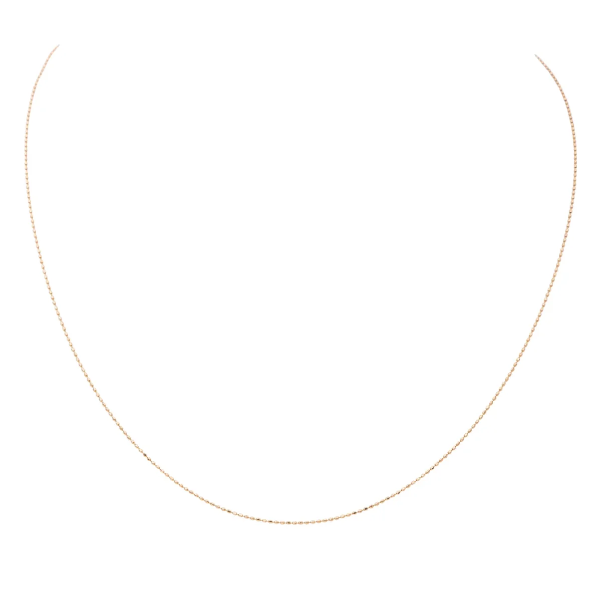 Chaine en or rose 750 millièmes (18 carats), testée, maille boules longueur : 38,50 cm, largeur : 0,007 cm, poids total : 1,09 g, excellent état