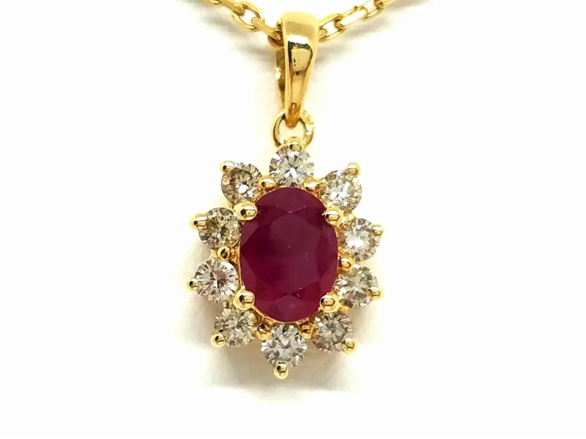 Collier Chaîne + pendentif Or jaune Rubis, Diamant